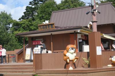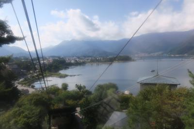 河口湖の右側の小高い山にかかるロープウエイである。急な坂を上ると10台停車できるスポペースがあるが、今回は満杯で、湖畔の駐車場(無料)に止めて徒歩で、切符売り場へ。往復900円である。あっという間に到着。河口湖には、モーターボートやら遊覧船が動いていた。終点からは、頂上はすぐで、売店、休憩所と河口湖が見渡せる展望台があった。売店などは、狸があちこちにいた。それでかちかち山ともいわれるゆえんである。一興!
