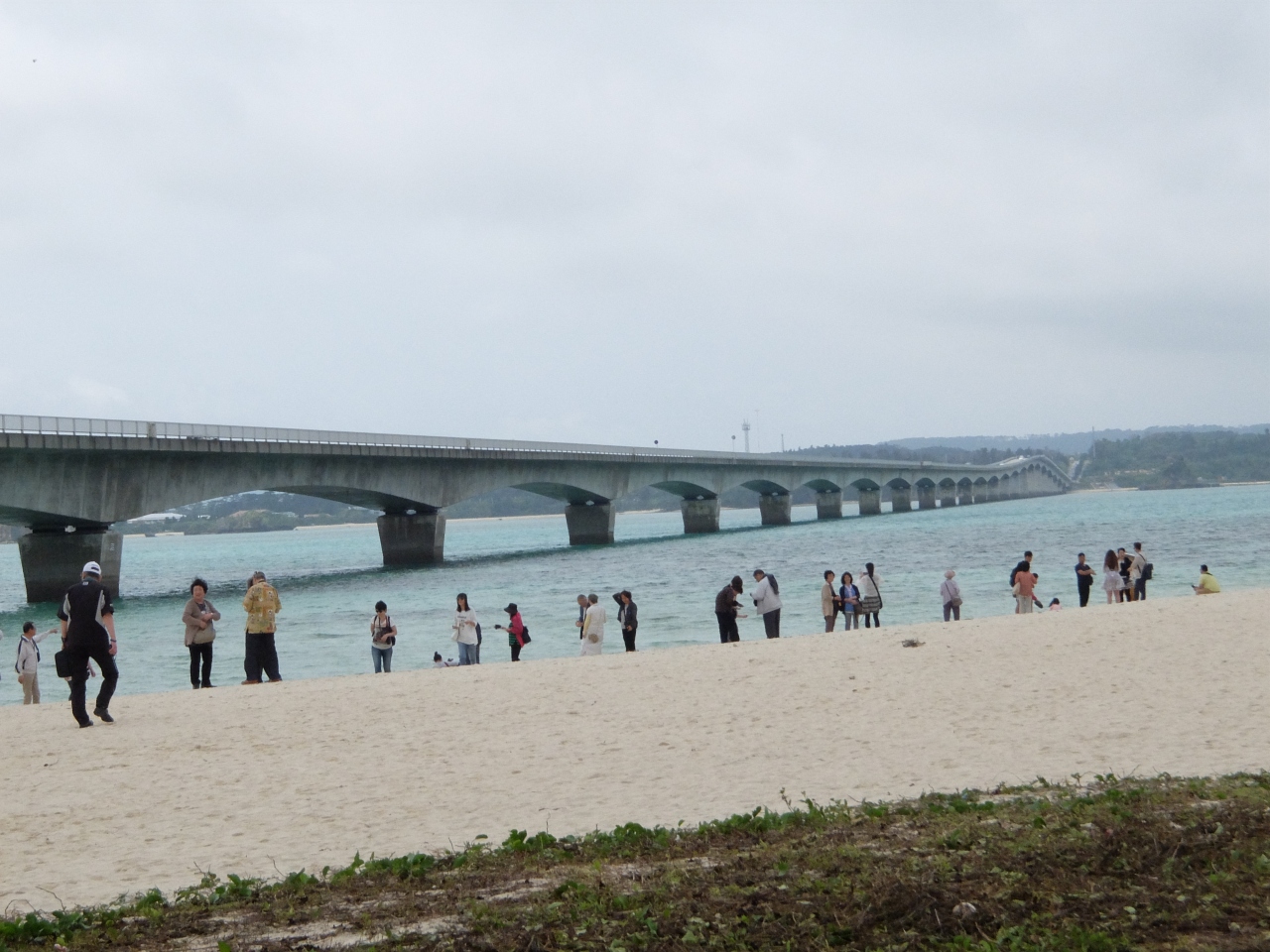 許田ICを降りて、一路古宇利島へと橋を渡り自然の景観を楽しんだ。橋一本で大きく物事が変わる。大変便利になったと同時に、観光資源としての楽しみをます。白い砂浜と、大橋のコントラスト、さらに海のコバルトブルーは素晴らしい。