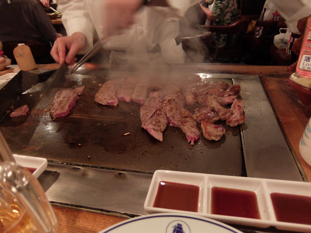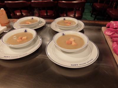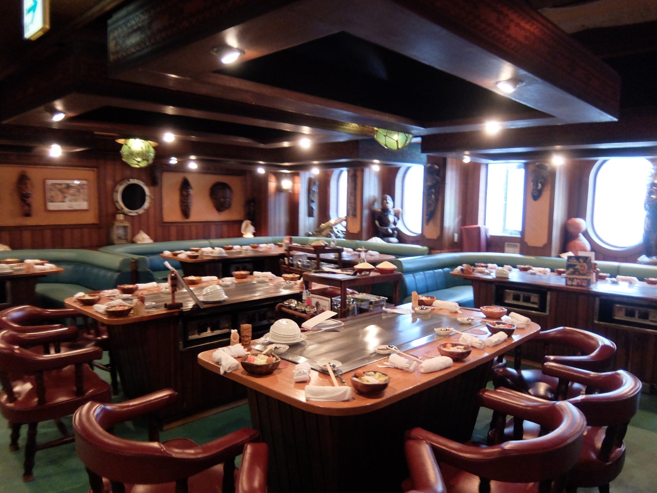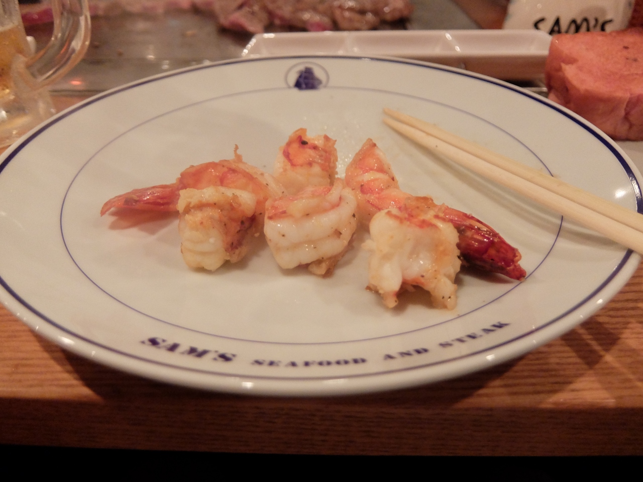 沖縄国際通りにあるこのお店で、特大の大ぶりの海老2尾 & 最上質サーロインステーキを、賞味。昔の紅花を思い出すように、料理人のパフォーマンスを交えながら、フルコースを楽しむ。どんどんアルコールのメーターも上がり、一同満腹で、エンジョイした。