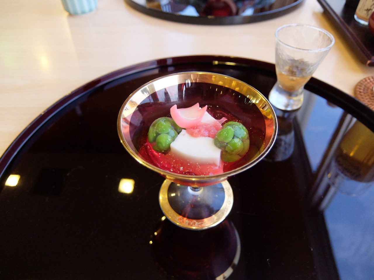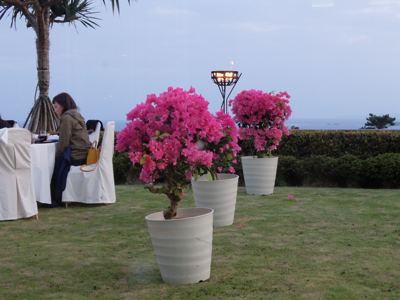 カヌッチャリゾートフロント棟の中にある和食レストランである。アラカルトもあるが、コース料理も季節に合わせ対応している。今回は、コース料理を頼んだ。窓からは海が見えるし、夜のとばりが降りると、ガスたいまつや、遠くの光が見え、リラックスできた。もちろんオリオンビールの生で喉を潤した。