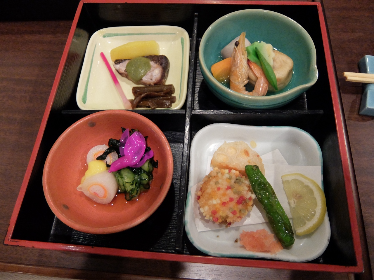 暑さが遠くになり始めた秋の一日、しばらくぶりで懐石料理にしたづつみ。みっしぇ卵丘の味が恋しくなった。秋は野菜、魚介とたくさんのものが、取れるし、また地の野菜、魚をふんだんに使っており、安全安心である。味は少し薄めであるが、これがまたとなくおいしい。帰りにおせち料理を注文して買える。