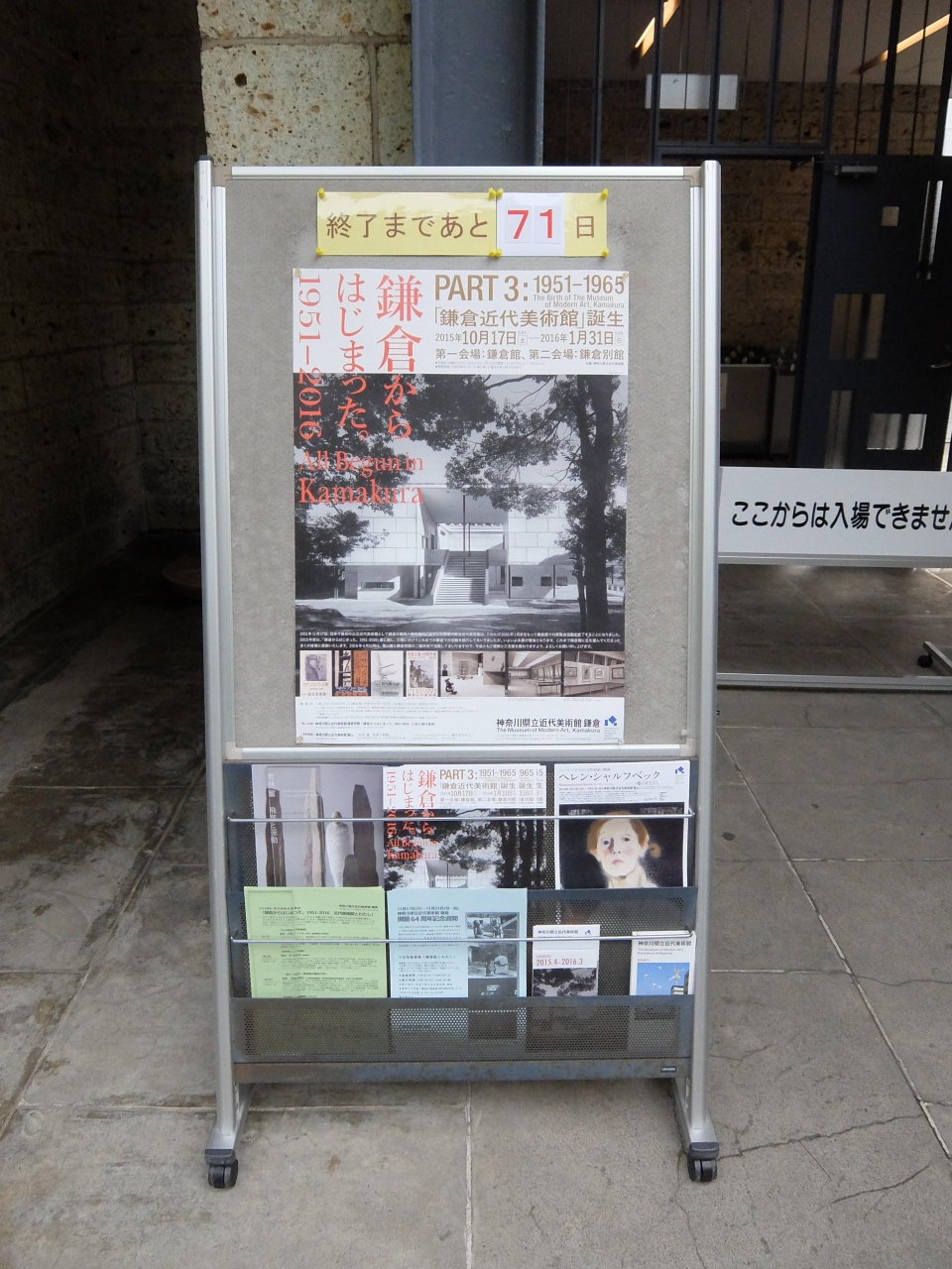 近代美術館鎌倉の別館として1984年に開館。主に彫刻、陶器などを展示している。ここも本館が休館することに伴い、休館となる。寂しい感がする。独立した建物であるが、バックヤードが、本館で行われているため、残念ながら独立で、機能しないことから、休館になる。