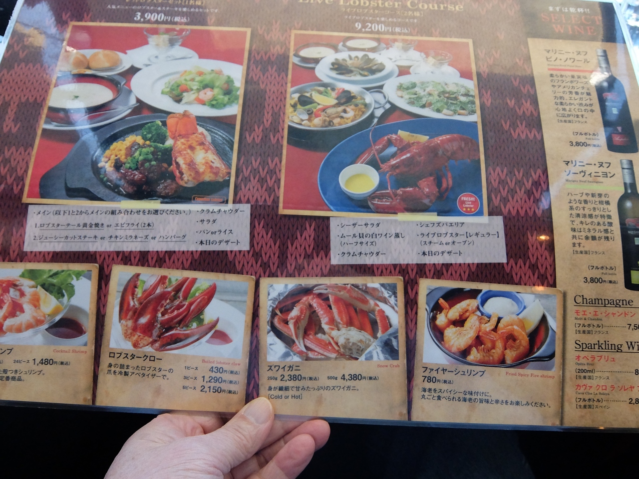 1960年代初めてアメリカで食べたレッドロブスターは素晴らしいものでした。今回逗子店で、久しぶりで、大きなロブスターを食べ、胃袋を満たしました。大変素晴らしいお天気で、カウンター席から、江の島、富士山が見え、より食欲を増した感がありました。こちらでは、カナダ産のロブスターが提供され、目で見て大きさを選べるのも素晴らしいです。