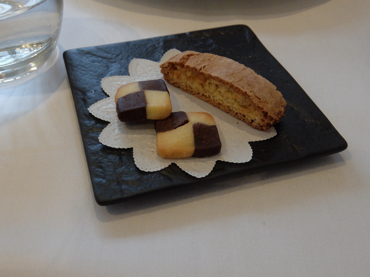新しくできたといっても、2月で2周年となるイタリアンにお邪魔した。窓から通りをはさんで、江の島や富士山の見えるレストランである。宵闇迫るころに訪問。正月明けから初めてのイタリアンである。コースメニューでオーダー。赤のグラスワインを飲みながらである。前菜は、2皿で、ヒラメのカルパッチョと湘南ブタのマリネ。パスタは、二人で違ったものを頼んだら、気を聞かせて、半分づづそれぞれが楽しめるようにしてくれた。メインは、それぞれアクアパッツァとイベリコブタを賞味。それぞれおいしい味であり、リピート間違えなし。あとは、ドルチェとコーヒーで夜の帳を楽しんだ。
