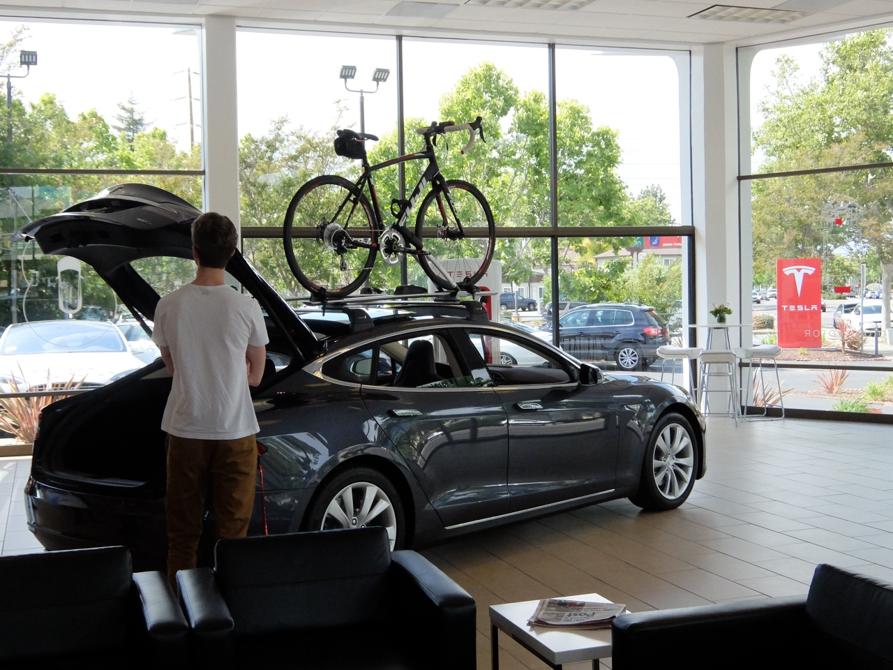 ベンチャー企業である電気自動車メーカーのTESLAのショールむが、パロアルトのエルカミノ沿いにある。ぜひ行って、テストドライブして着たらどうかとアメリカ人の友達から言われたので、訪問。エコの代表であることから、一切カタログなどはない。すべてウエブを見てほしいとのこと。無駄のない作りである。テストドライブは予約制なので、今回は実現しなかった。次回にチャレンジしてみたい。