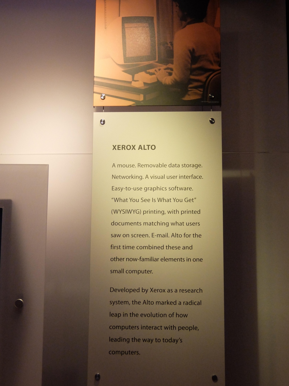 コンピュータの歴史が、1940年のENIACに始まり、今日のパソコン、タブレット時代まで、ありとあらゆる製品が説明付きで並んでいる。こんなこともあったんだと、自分の記憶を整理するには最高の場所である。それぞれの会社の栄枯盛衰も一目瞭然。これからの歴史はどうなるのかと思いをはせた。