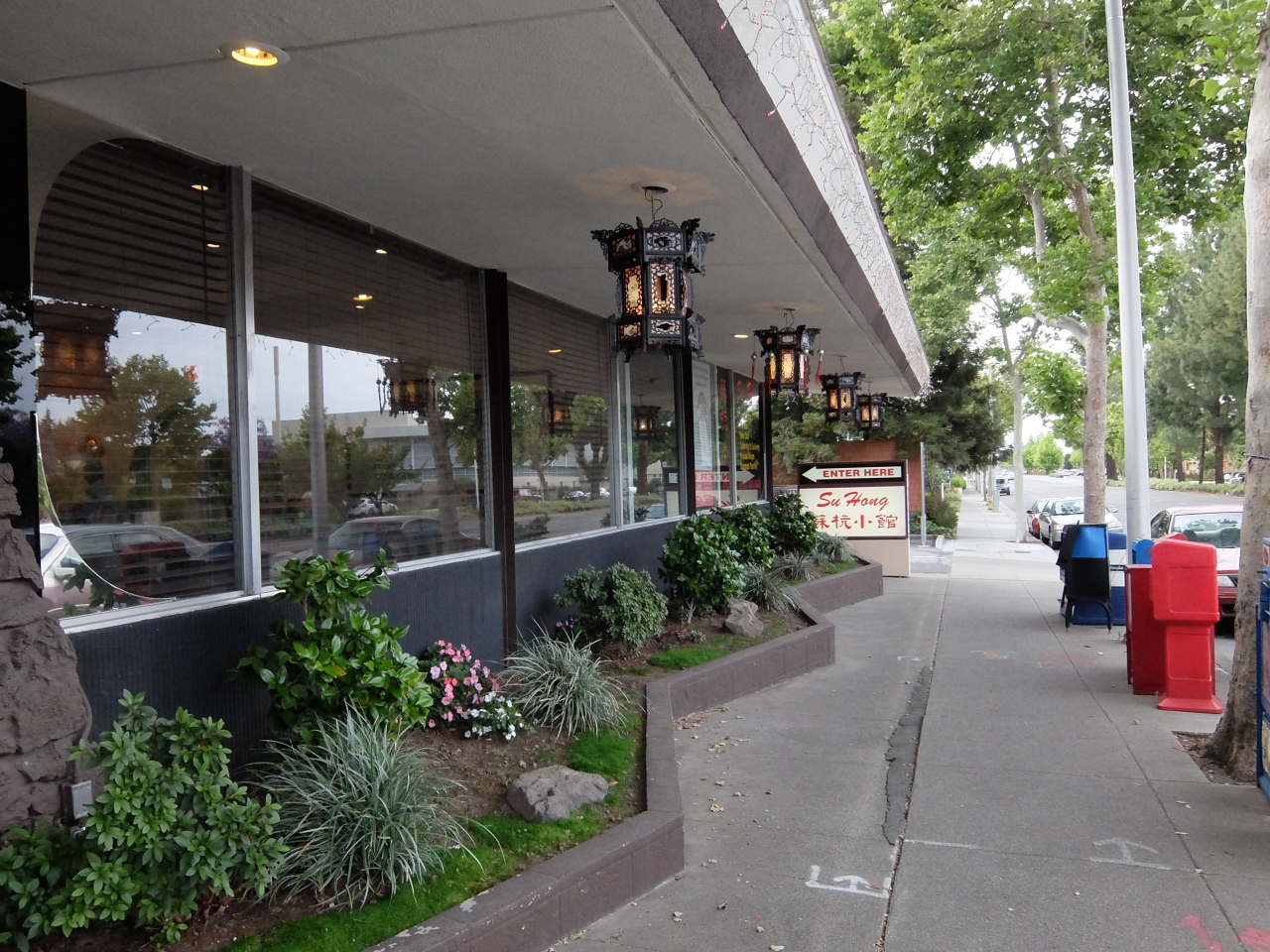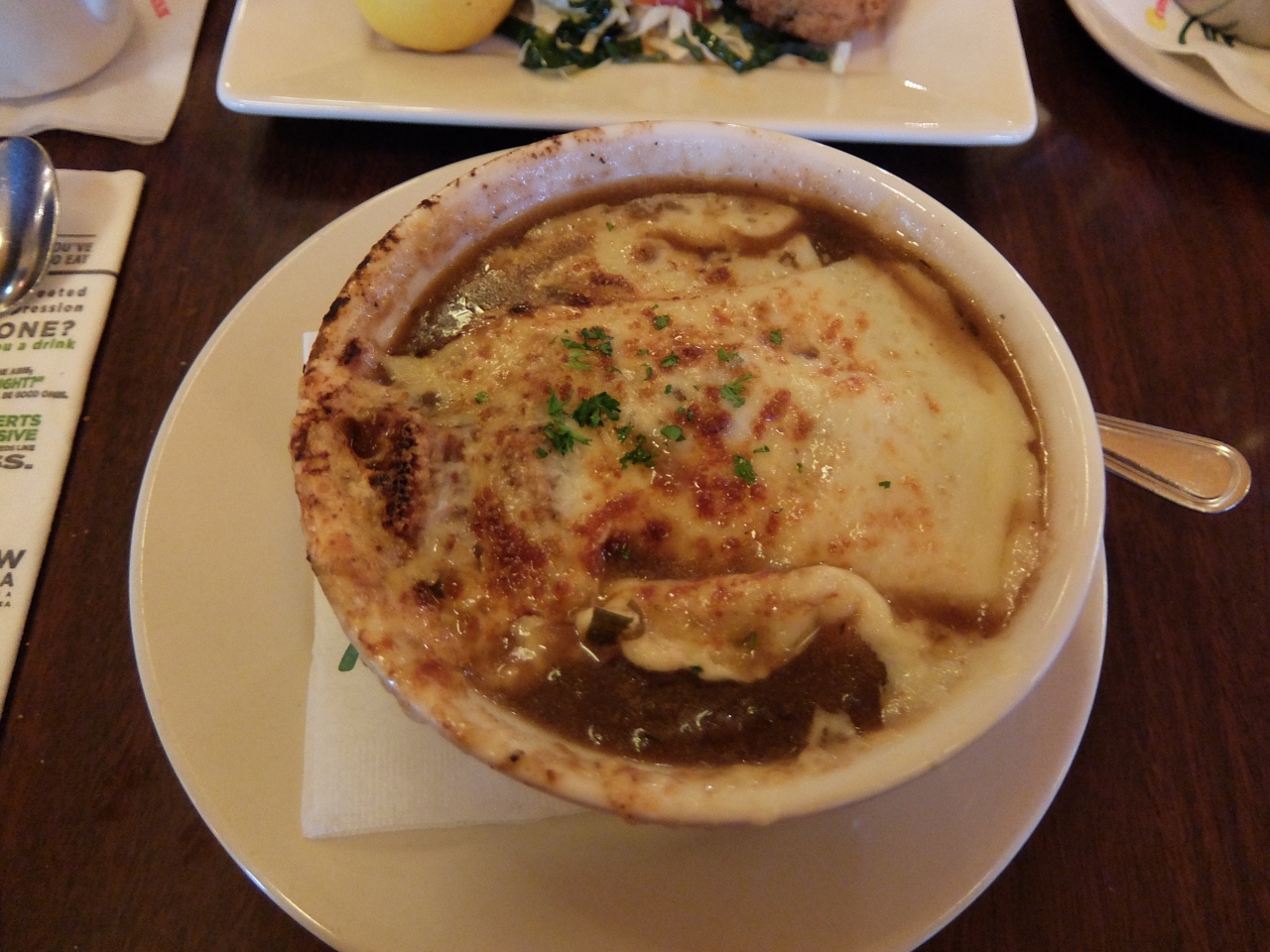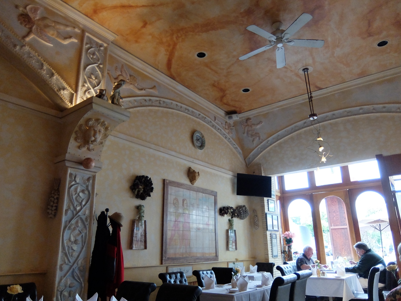 Allied Arts Guild見学ののち、メンロパーク市内を散策。ちょうどお昼となったので、目抜き通りにあるこのお店によりました。天井が高く、広々としたお店で、昔来たことがあるのを思い出しました。二人で、一品ずつとり、シェアをしました。量的には、これが最適でした。