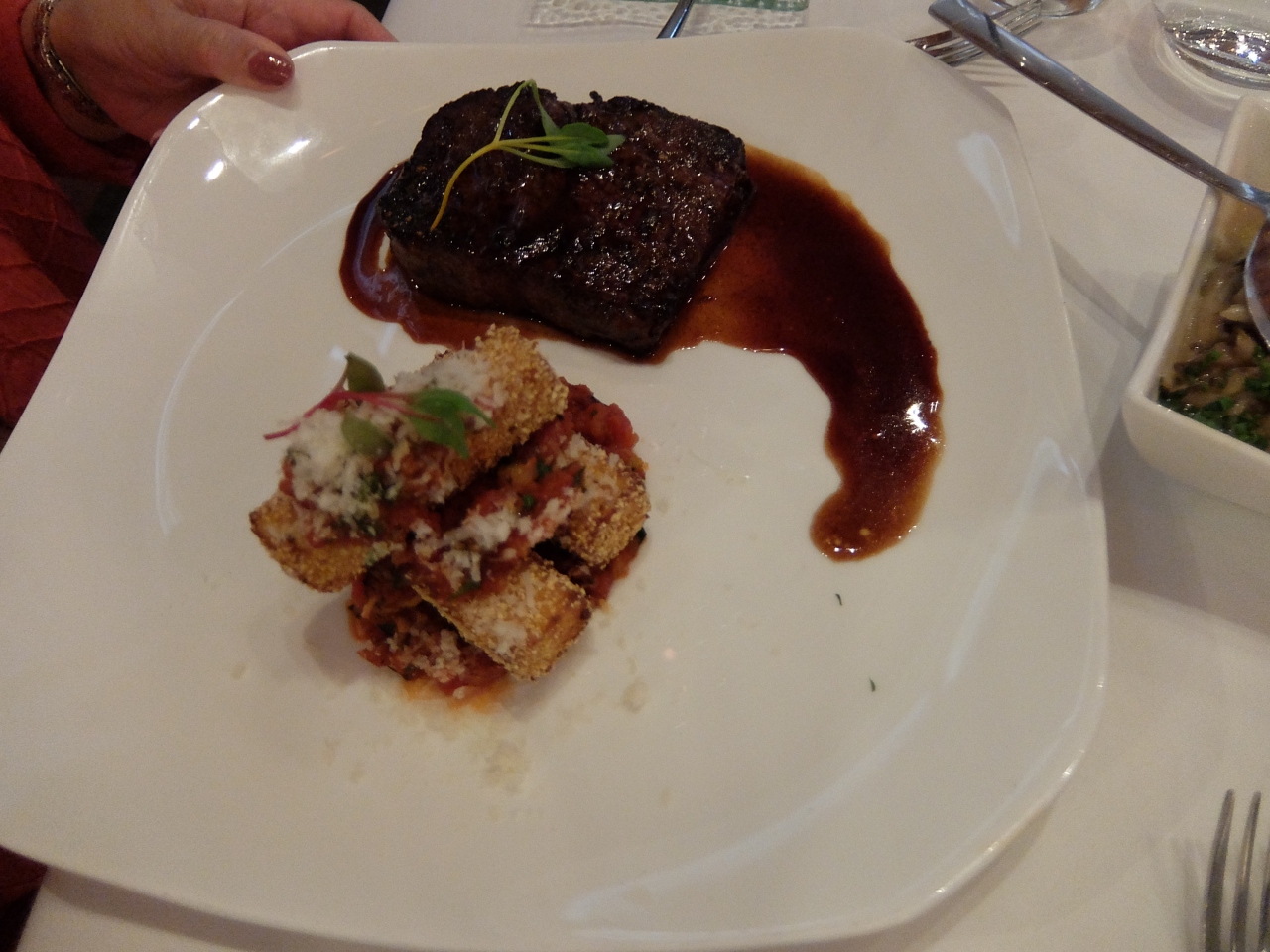 やはりこのホットなシリコンバレーで話題のレストランには行ってみたいものです。ステーキで有名なAlexsanders Steakhouseが経営している。定評のあるレストランである。宿泊しているホテルの中庭にあるので、便利でした。料理などのプレゼンテーションは素晴らしいものがあります。多くはカップルが、着席しておりました。 アッペタイザーから、デザートまで、そのデコレーションは感嘆するものでした。値段対比では、よかったです。