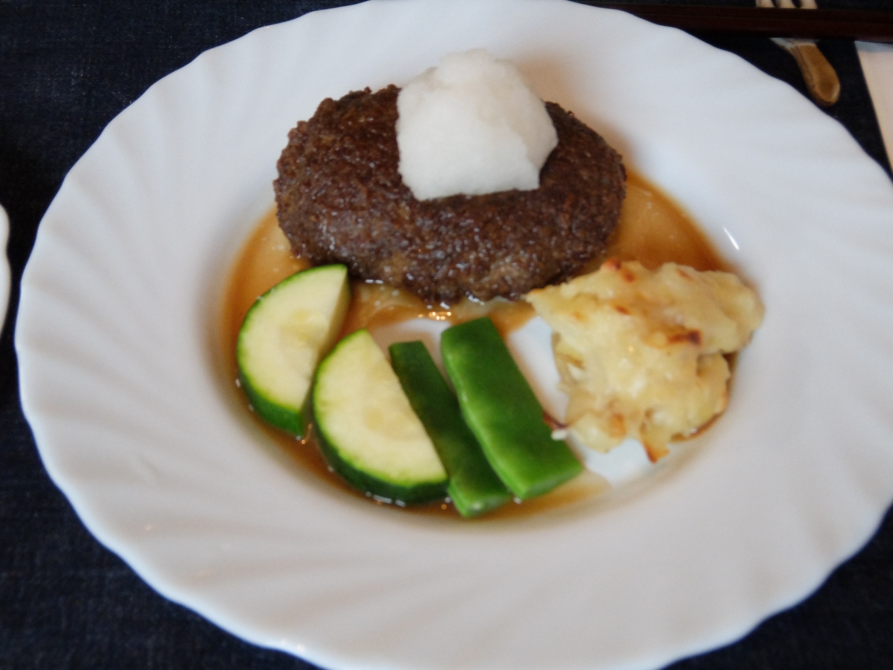 来てみようといいながら、なかなかチャンスがなかったが、先日テレビで放映していたので、混まない内と、予約をした。まず、今回は、葉山牛のハンバーグで、でみぐらそーすと、大根おろしをそれぞれ頼んだ。サラダも、あっさり目でよかった。ハンバーグは、しっかり練っていると見え、ふわふわで、味付けも最高。何か病みつきになりそう。