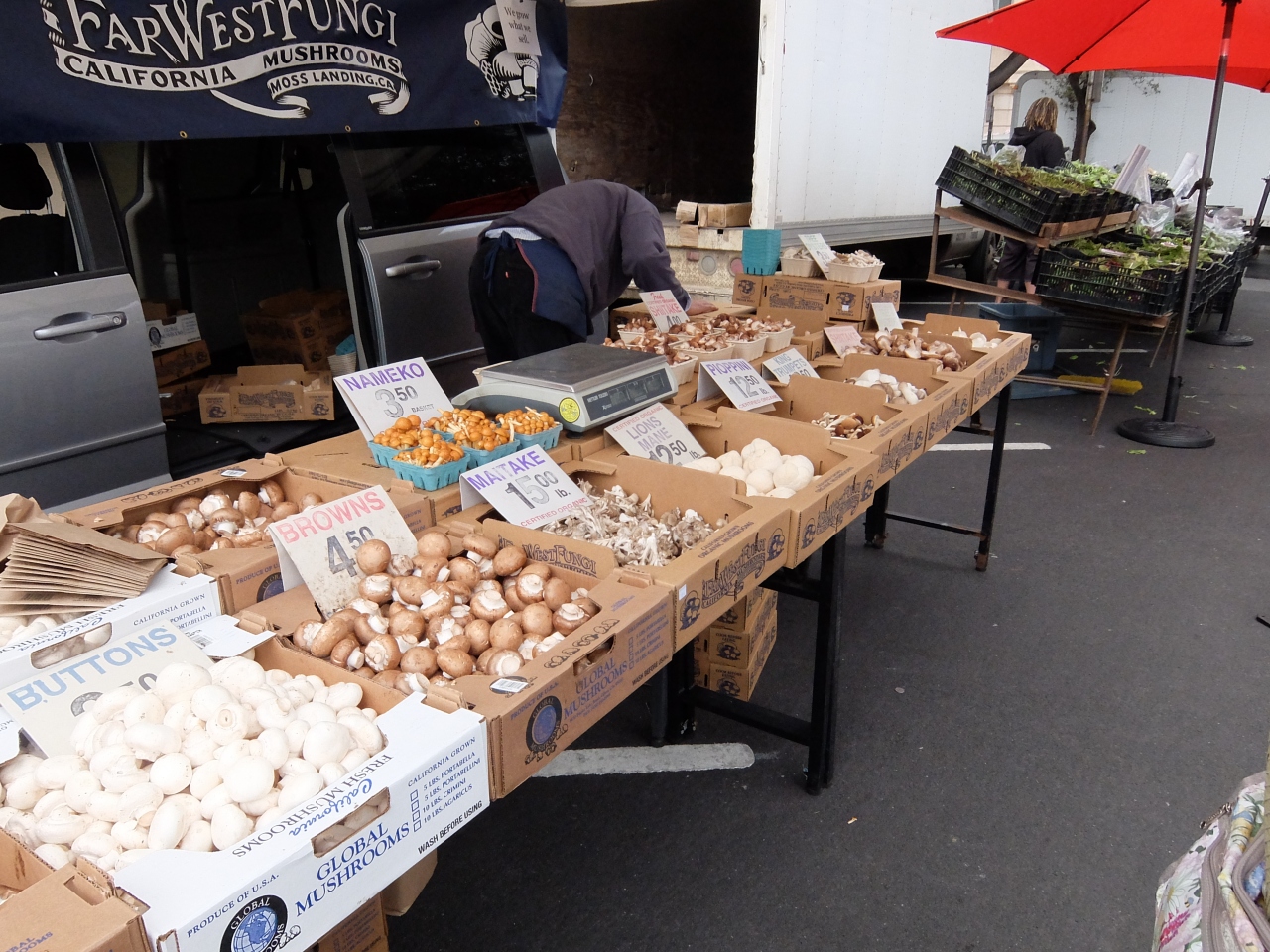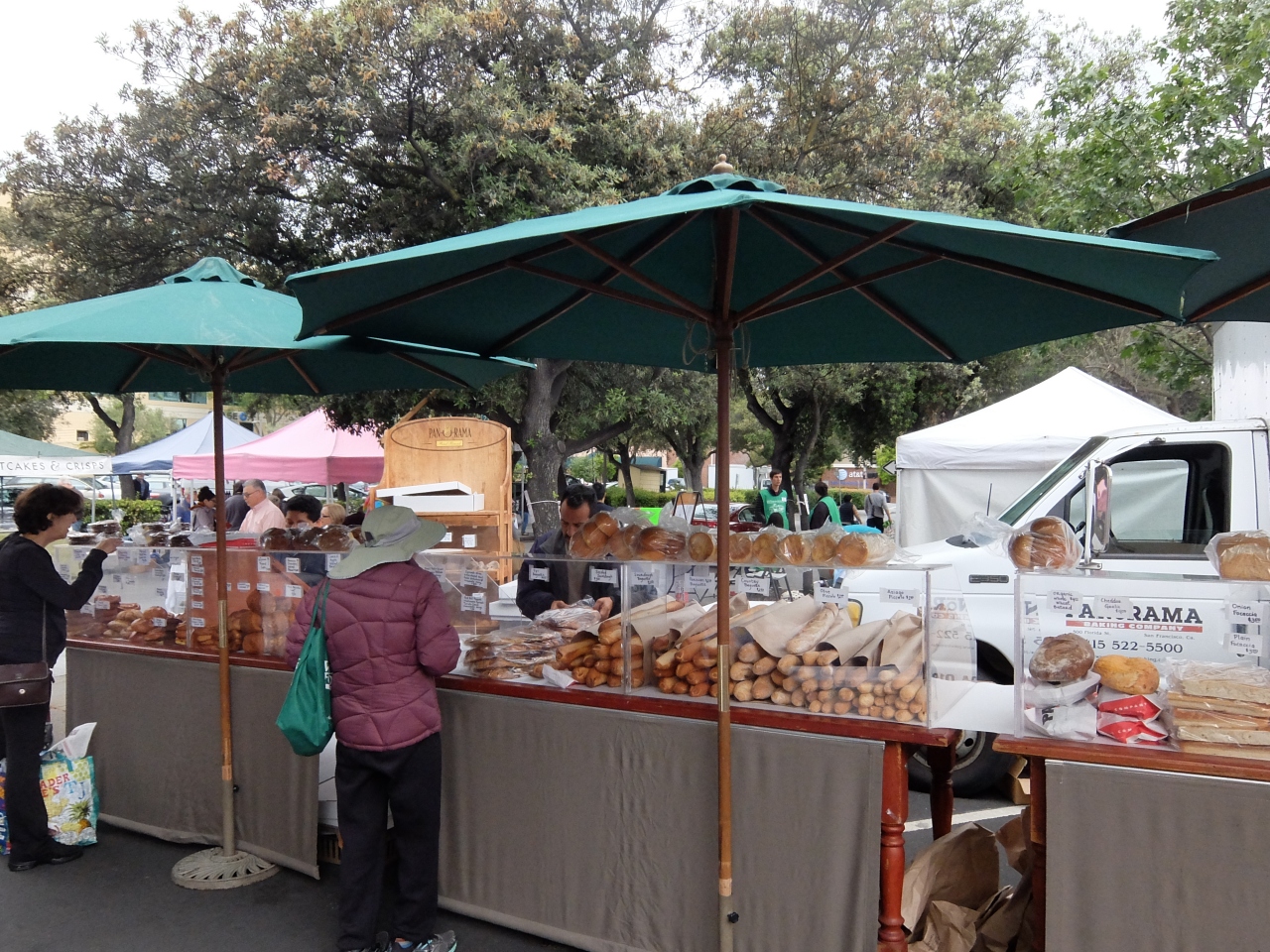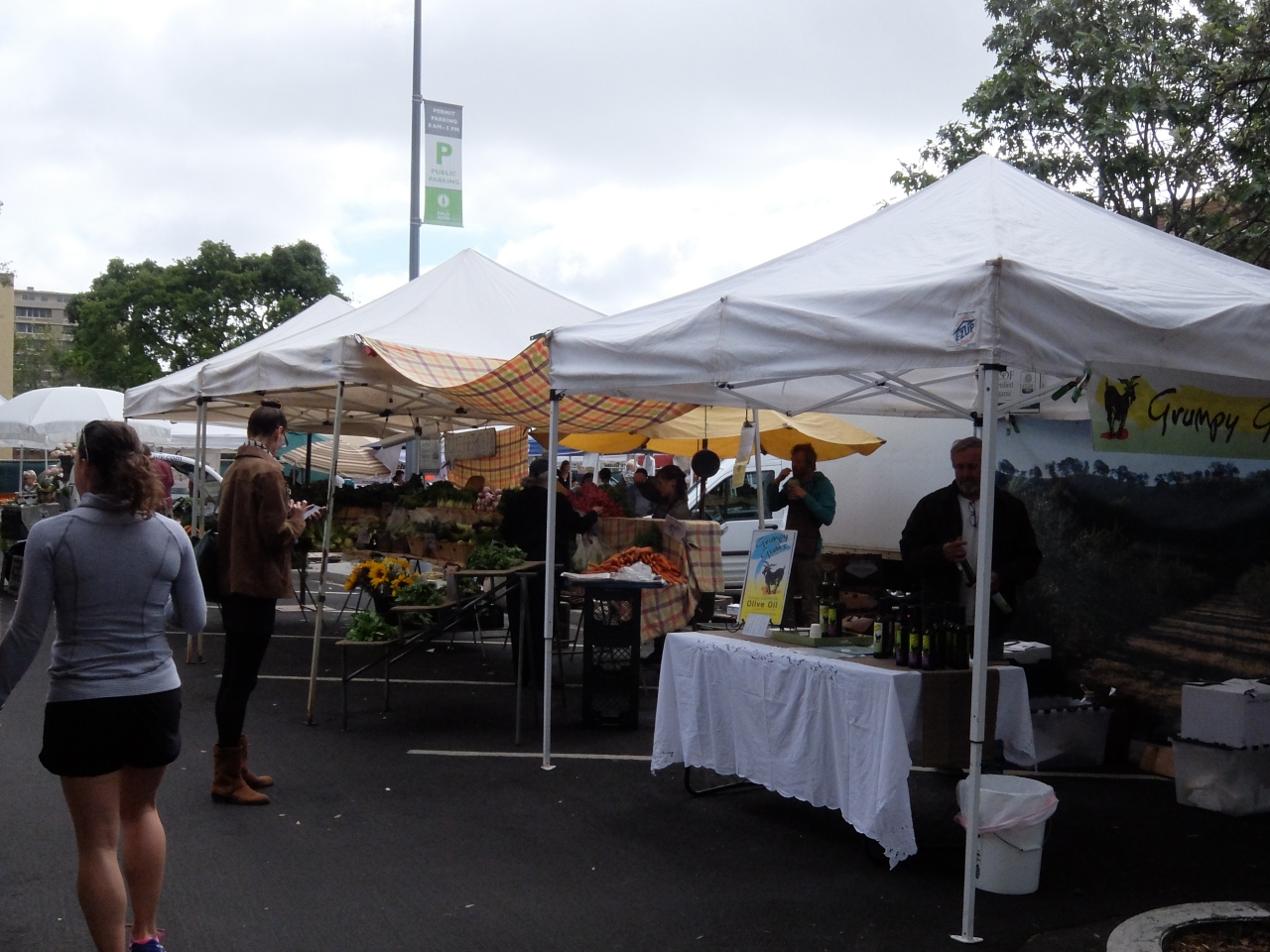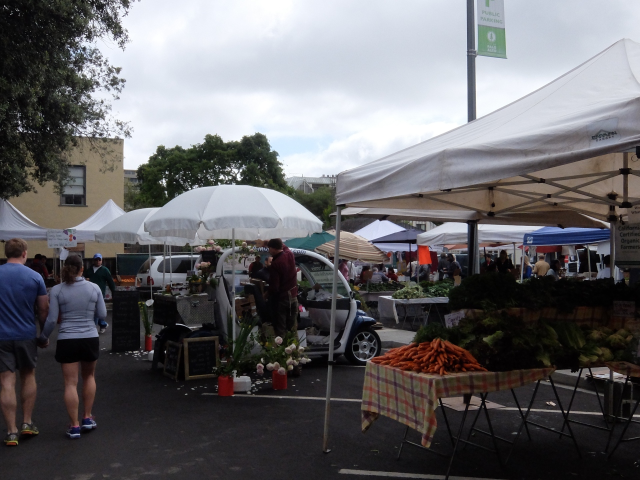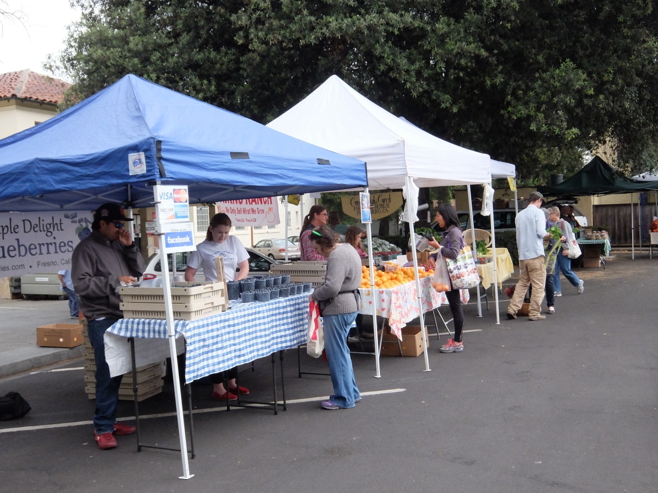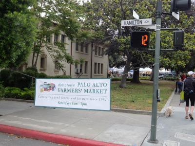 土曜日の午前中に開催されるパロアルト市内の中心部です。駐車場もあるし大変便利です。市内の方が大変喜んでいます。野菜、季節の果物、ナッツ、きのこ、パン、軽食などなど便利です。診精を出している人も常連であり、皆さん会話が弾んでいます。ボランティアが、合唱をしており、朝の憩いには素晴らしい環境です。