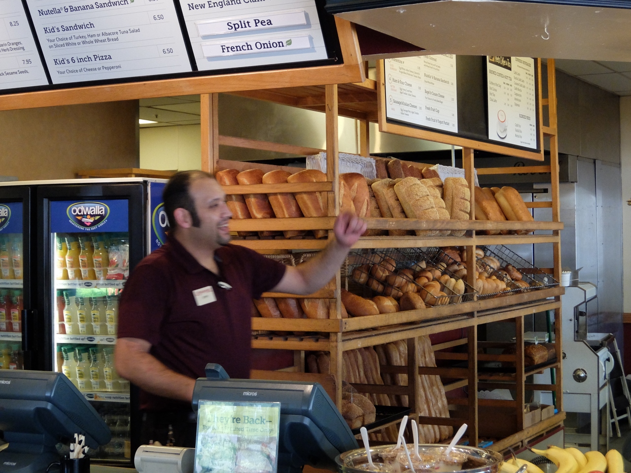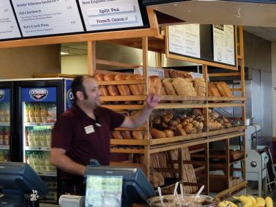 ロスアルトスの目貫道理にあるお店で、朝から込み合っています。近隣の人たちが、テークあるとしたり、お店で食べたり、あるいはパンだけを買っていったりです。パン屋としては、チェインになっており、カルフォニアにはなじみのあるお店です。