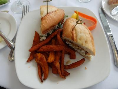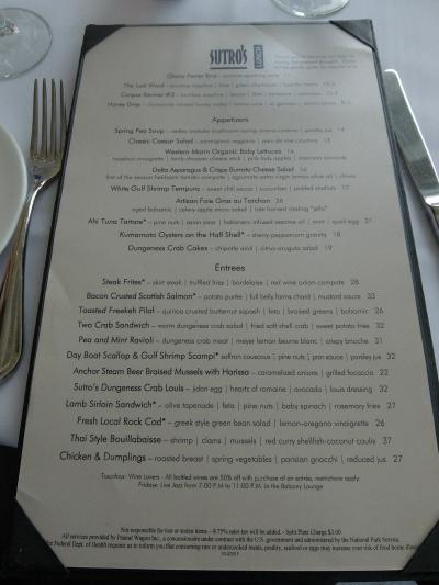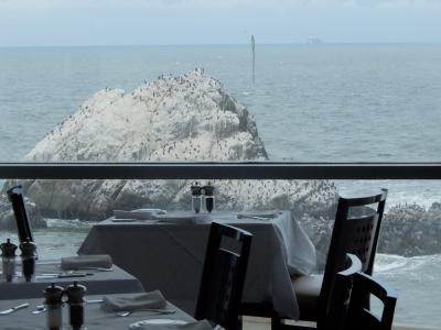 サンフランシスコの友達から食事をしようということで、ゴールデンゲート公園の西側にあるCliff House内のレストランSutro'sで昼食。見晴らしは最高で、海側に岩があり、そこにはたくさんの鵜やペンギンが、たむろしている自然を見ることができる。昼食は、スープに、男じぇにスクラブのサンドイッチとまさにカルフォニアン。もちろんデザートも楽しんだ。