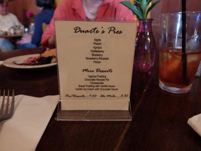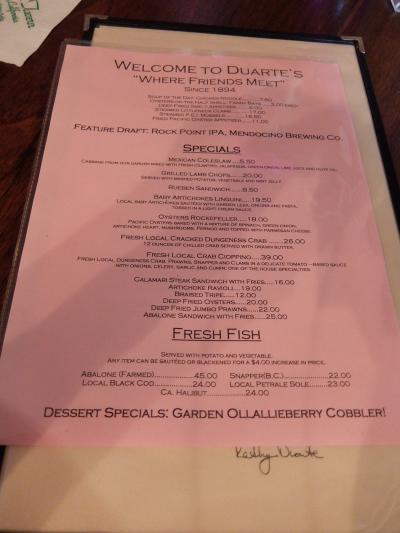 パスカデロ唯一のレストランである。All Dayでのサービスをしており、ローカルの風情を醸し出している。中に入ると地元特産のブラックベリーの一種のジャムなどを打っている。ここの特徴は、アーティチョークのスープであり、それも普通と辛いものの2種あるが、Half & Halfで頼むと、一つのスープ皿にうまく混ぜることなくいただける。