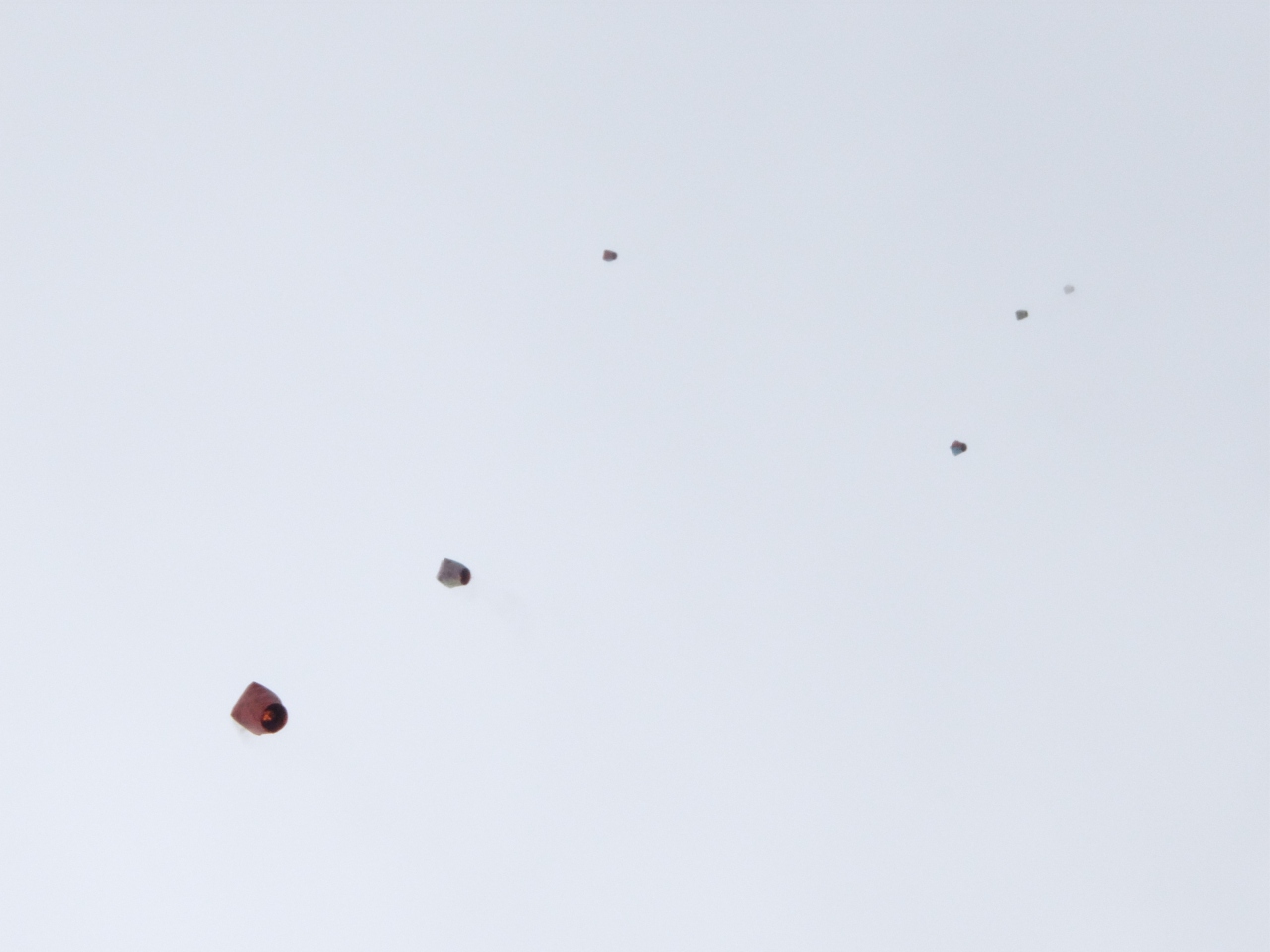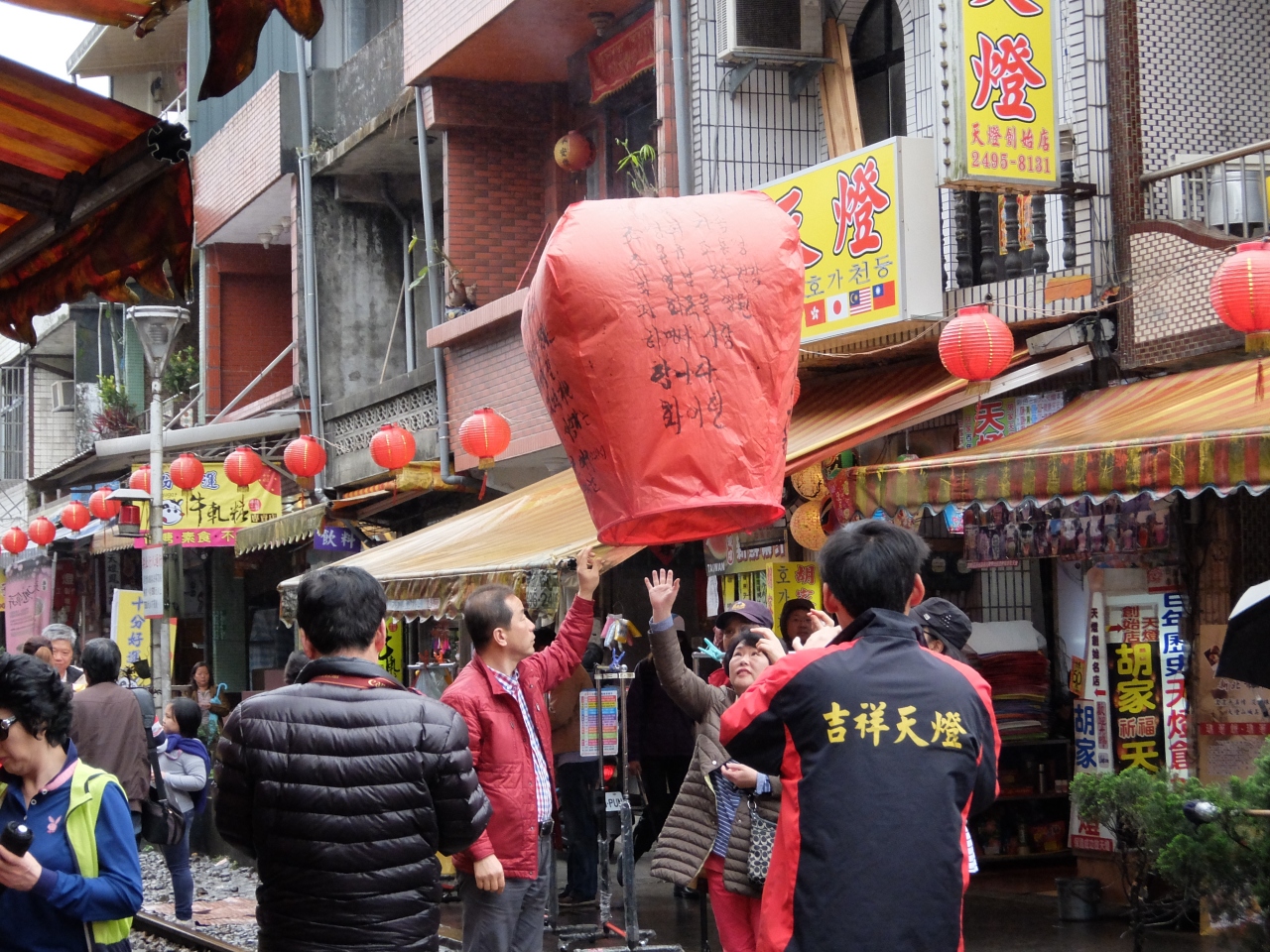 ランタンフェスティバルが、近代的といえる。古来ランタンといえば、大きなランタンに願い事を書いて、空に飛ばすものである。夜に飛ばすのが、1月15日、それ以外は中間だけである。一つ150元(ものカラー)、あるいは200元(4色)である。店の前のハンガーにランタンを取り付け、済みで願い事を書く。4面あるので、それぞれに位置を変えて、幸福を呼ぶべく書く。書き終わると、店員が、ランタンの下部に取り付けてある着火版に火をつけるとその熱で、上昇する。楽しい経験であった。
