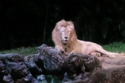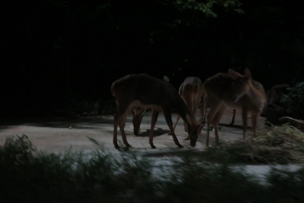 世界でも珍しい夜の動物園であるシンガポールのナイトサファリです。夕刻5時半開演で、申し込み時間のトラムカーに乗るまで、お土産の購入やら、食事で時間をつぶす。予約時間が7時半であったので、その時間を見計らって、入り口に並び、トラムカーを待つ。4人掛けで、着席をして、のんびり走るトラムカーの両脇に、それぞれ動物が出てくる。走馬灯のようなものである。でもなんとなく迫力がなかったのは気のせいか。