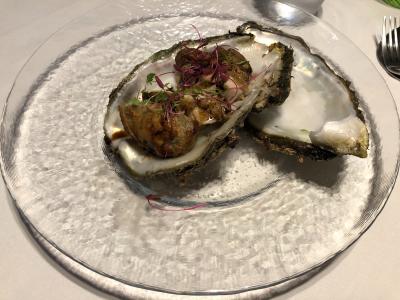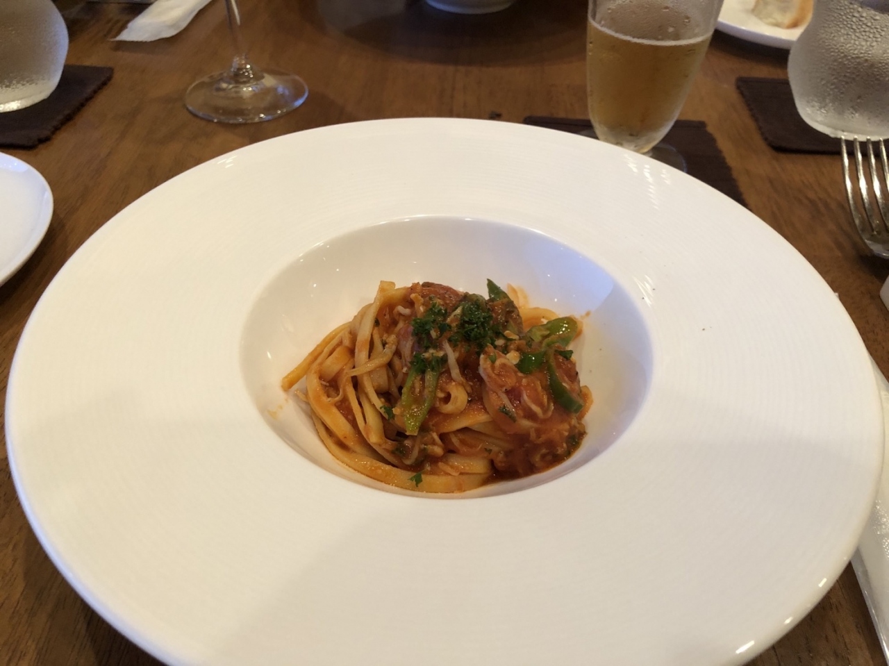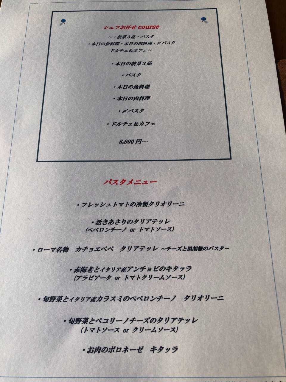 アットフォームなお店。玄関横の小さなお部屋、多くても4~5人が入るところを二人で、イタリアンのコース料理を堪能した。かわいいうさぎのアミューズから始まり、夏牡蠣、、ラビオリ、パスタ、真鯛、お肉と手をかけた料理を楽しみました。デザートも、風味のあるものでした。