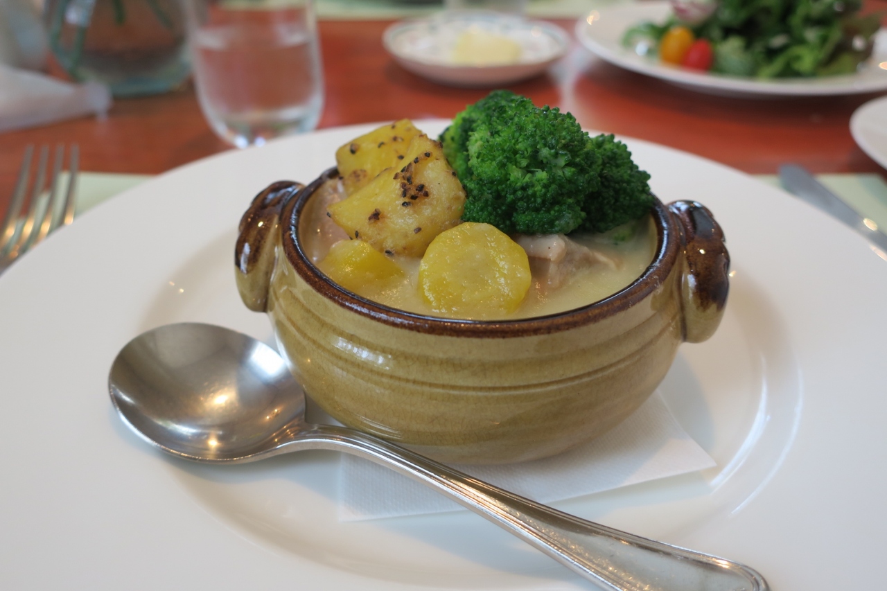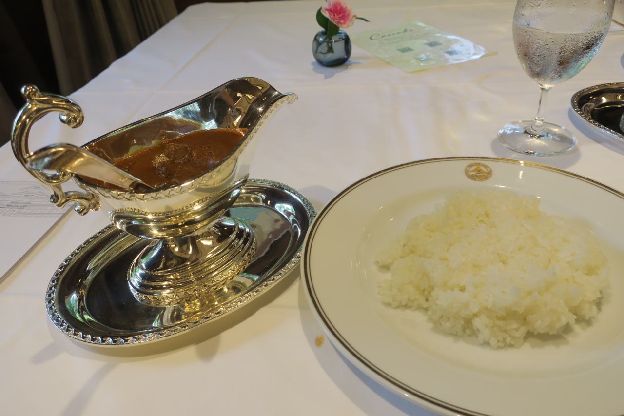 いつ行っても待ち行列となるカスケードではあったが、コロナによる自粛で待つことなく着席できた。テーブルに着くと同時に、マスクを入れる紙製のホルダーをさりげなく置いていいた。心遣いである。メニューから、ビーフカレーセットを注文。サラダ、ビーフカレーといつもの定番である。この味が何とも言えない。何回来てもおいしい。これぞ伝統の味である。そのあとホテルショップを見て、退散。
