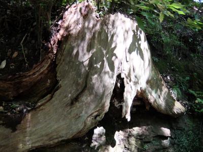 山が迫っているのでかなり急こう配のところに階段が整備されている。それを上ると尾根ずたいに歩く。尾根は、木の根がはびこっており、少し歩きにくいが、それほどのアップダウンがあるわけでなく、全行程30分の気軽なコースである。コースの終わりのところに見晴らし台があり、ここから鎌倉由比ガ浜の海辺が見える。そこで少し休憩してから、少し戻り、八雲神社へと急な坂を下りる。- 旅行時期