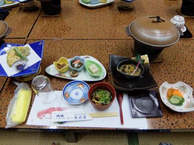 久しぶりで、サイトをめぐりこの大東館を見つける。便利がよさそうなことと、湯畑が部屋から見えるとのことで、あっさり決定。お風呂も露天つきである。こんこんと描きデル湯量は、日本一のことはある。ゆっくり温まった。食事は、2階の大食堂で、個人、団体一堂に会しての場所である。結構落ち着いて、食事ができた。