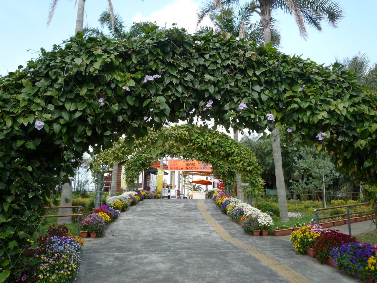 国道を南下して、堀切峠に向かう途中の断崖絶壁の上にある道の駅です。断崖の下は、太平洋に面して洗濯板岩がずーとつながっています。大変見ごたえがあります。もちろんヤシもしげり、南国じょちょたっぷりです。そこのあるのが、この道の駅です。1階がお土産や、2階がレストランと、豊富に揃っています。お土産はもちろん、マンゴーをはじめとして果物、野菜と目移りするものがたくさんありました。帰りに再度より、土地中で買い求めたものと、新鮮な果物、野菜をここでパックし宅急便で、送りました。