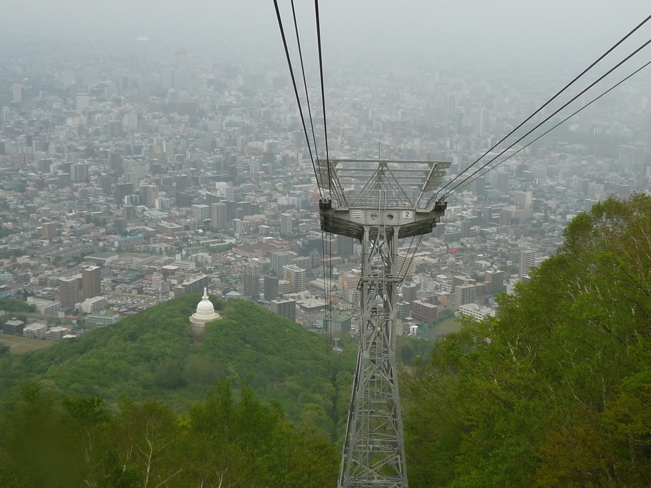 札幌に行ったからには、藻岩山からの札幌一望を楽しんだ。ホテル前の市電西8丁目から乗って約15分。ちんちん電車も素晴らしい。ロープウエイ前で下車し、そのすぐ横から、ケーブルカー入口まで、無料のシャトルバスが待っている。5分もかからないところであるが、坂道を歩かなく済む。ロープウエイは、15分ごとに運航しており、あっという間の空中散歩。これも5分で、中腹駅へ。ここから、モーリスカーへ乗り換え、あっという間の頂上。素晴らしい展望である。ここからのハイキングコースもあるとのこと。シニア割引もあり、得をした感じである。