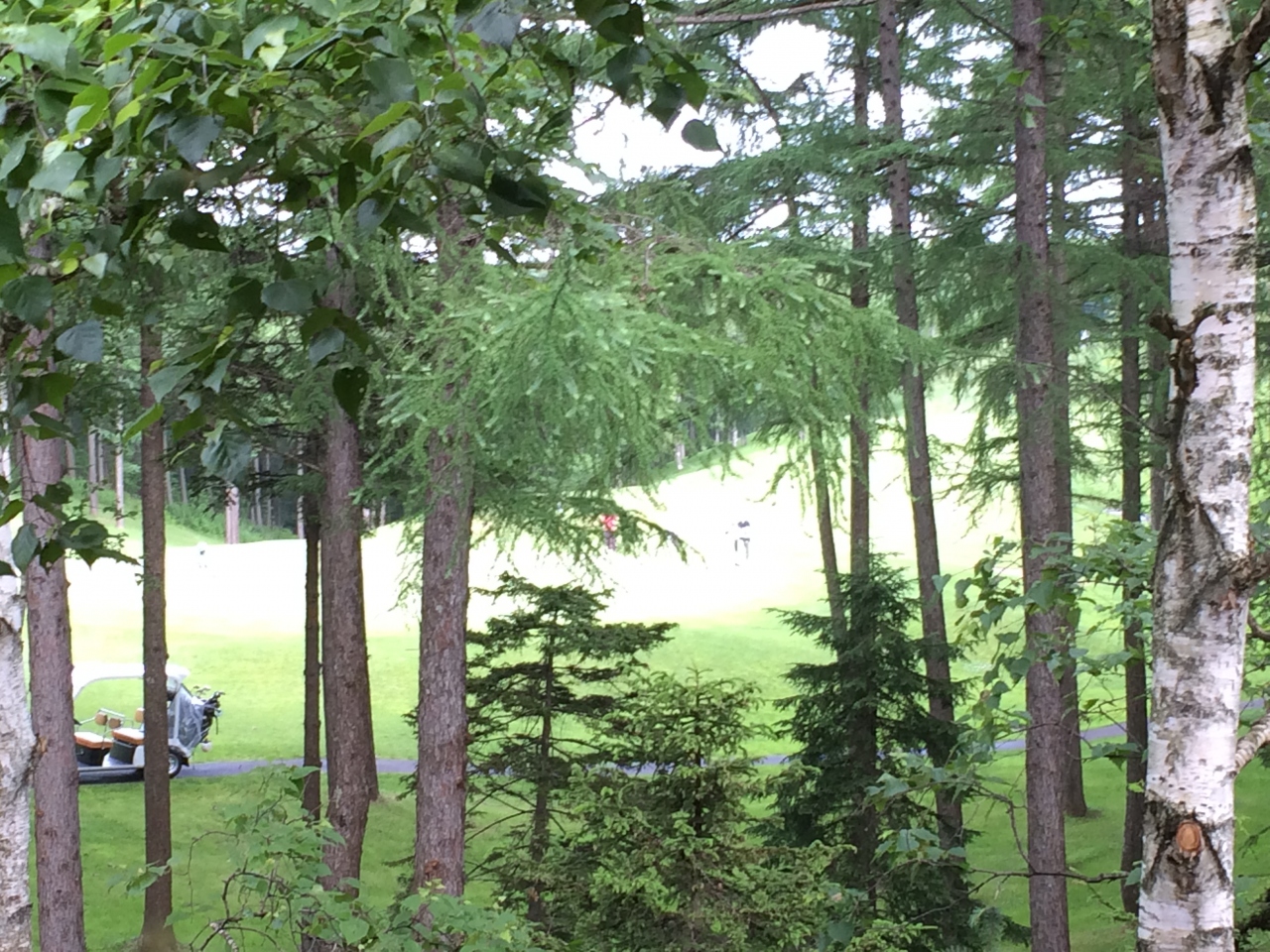 千歳より苫小牧方面にバスで30分程度。到着するとまさに森林の中にあるゴルフ場で、それだけの価値がある。今回は、首領コースを、歩きで回ることになった。初めは総会で、みんなうきうきと歩いていたが、ハーフを回り、少しの休憩でスルーで、回りだしたころから、暑さも厳しく、徐々にバテバテ、午前中まっすぐ飛んでいた人も、後半は、右や左に打ち込み、苦労を開始。前半のスコアーは、とこえやらという感じ。それでも、楽しんで素晴らしいコースをエンジョイできた。