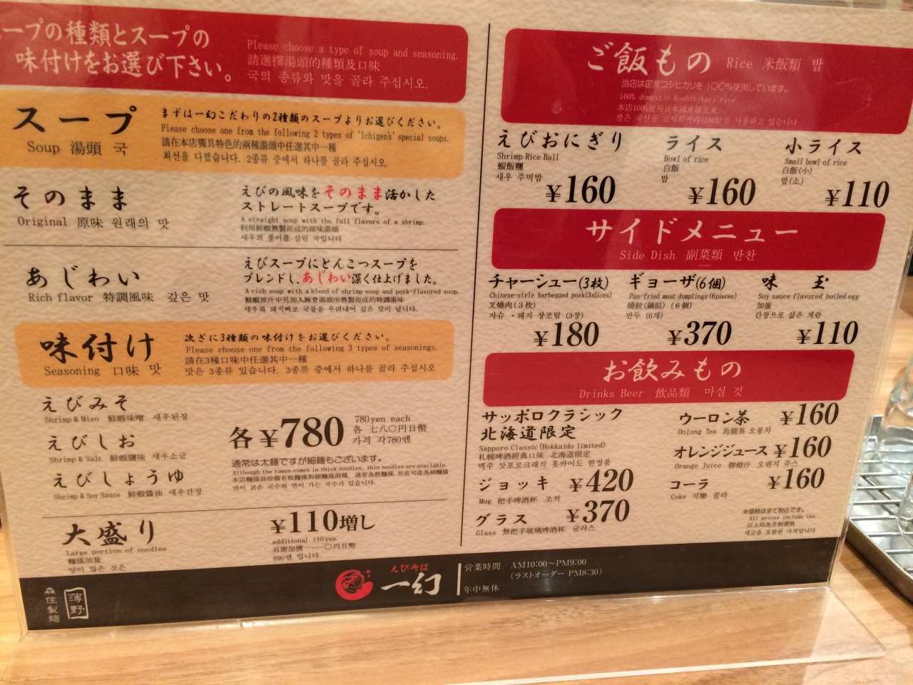 最近は、千歳空港に来ると、行きも帰りも、ラーメンである。エビをたっぷり使いそのスープで作るラーメンは、やはり違う。エビの濃厚なスープが、結構ラーメンにある。ラーメンを細麺、太麺といわれたのでスタンダードは、と聞くと、太麺ということでそれを注文したが、味の観点科類と細麺の方がおいしそうであった。次回のはレンジ。
