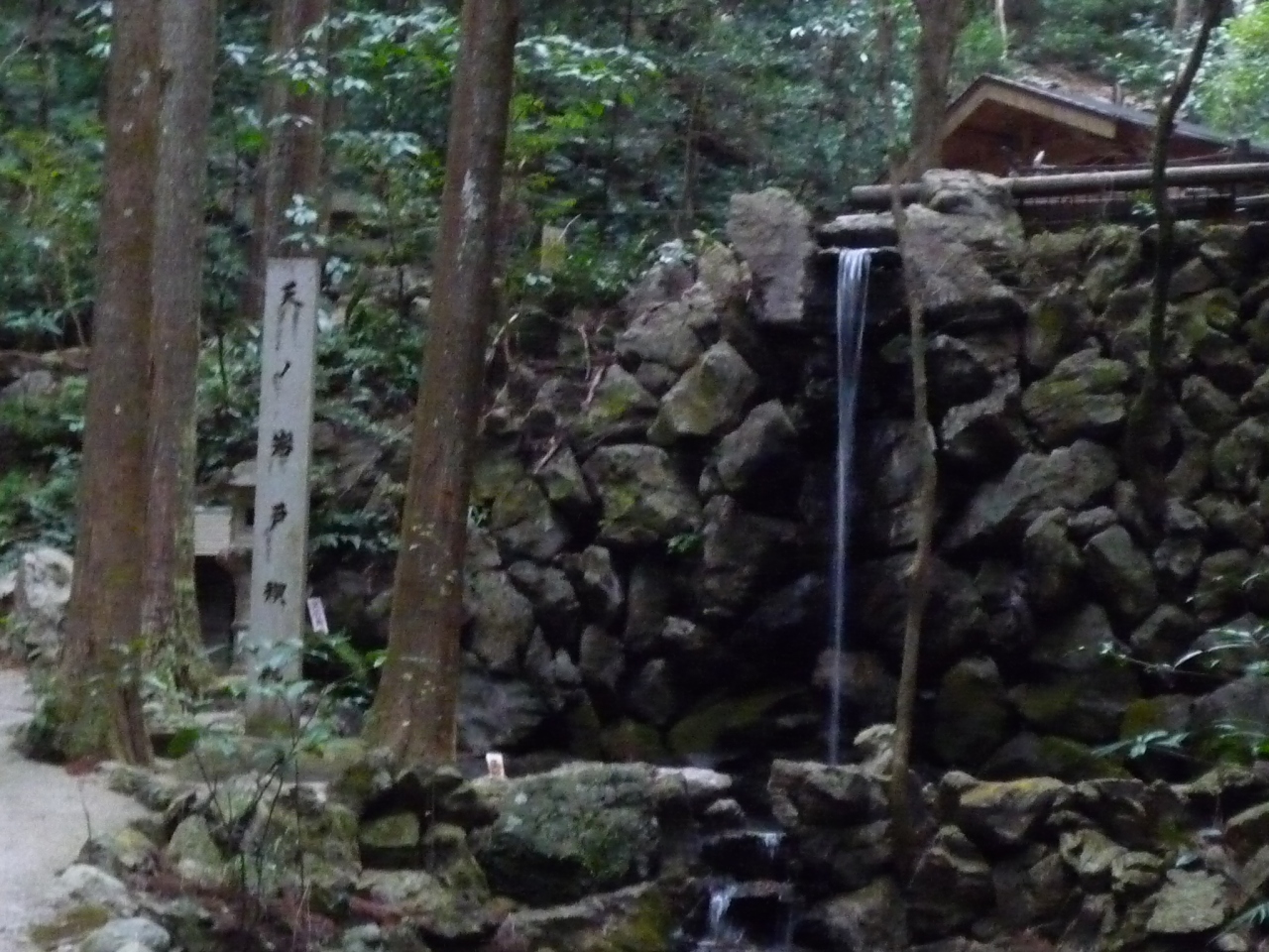 伊勢神宮をお参りし、賢島へ南下する伊勢道路(167号線)の途中にある天の岩を訪れた。細い道を1.5kmぐらい下がったところに駐車場があり、そこから徒歩で7~8分のところにあった。深山幽谷の中、人っ子一人もいなく、我々だけであった。シンプルゆえに神秘的であった。日本の神様がここから出てきたと思うと、なんとあく優雅なものである。洞窟より湧き出る水は、大変おいしいとのこと。