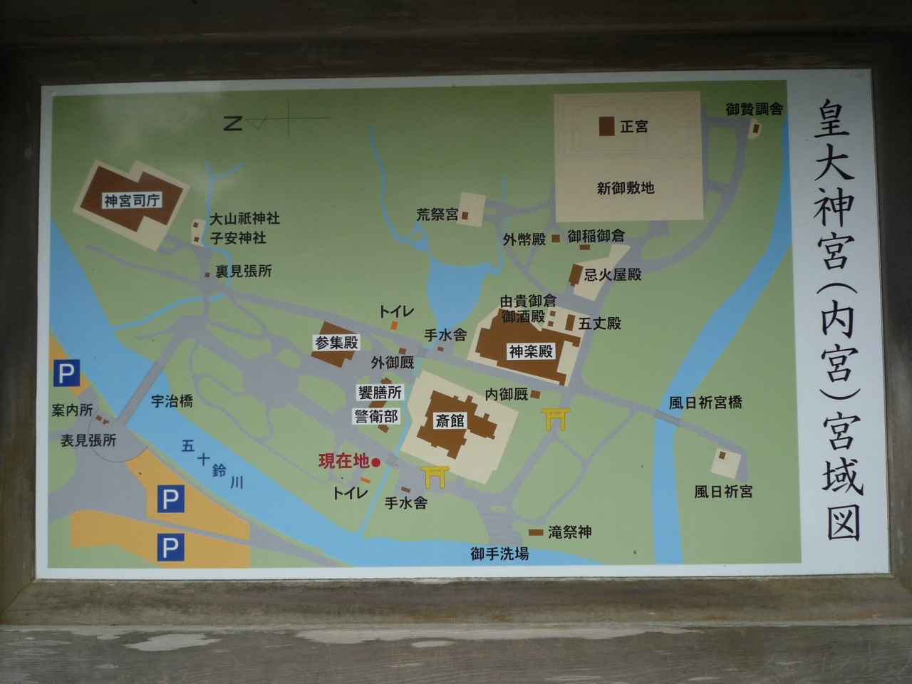 順路通り、外宮→内宮へ参拝。内宮への移動は、バスを使った。内宮の駐車場は、大変混んでおり、1時間以上待たされることハザラとのことのアドバイスで、片道410円を払い、のんびりと移動。到着すると平日にもかかわらず既に大変な人ごみであり、10月の遷宮の時はどのような状態になるのか?