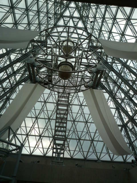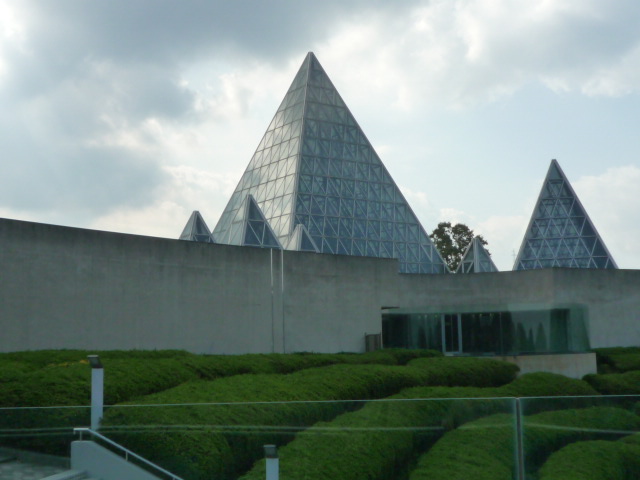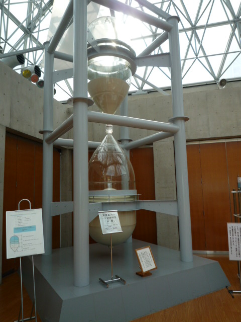 石見銀山に行く途中にあるこの施設。何度か見てみたいと思いながら、時間の制約で見送っていた。今回初めて、有福温泉から、車で行きました。どんよりした天気でしたが、ガラスのピラミッドの建物で、ひときわ目立つものです。入場では、色々の割引があり、JAFを利用しました。2割引きです。最初のホールに1年砂時計が天井につりさげられています。そのレプリカがが、正面左においてあり、その大きさにひきつけられました。1年かかる砂時計にお目にかかったのは、これが初めて。1年たつと、ひっくり返すそうで、その時にまた来てみたいと思いました。