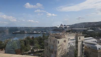 カスピ海を目の前にした海岸公園横のホテル。ブルー色のカラスに包まれたビルである。石油資本により、建てられている超近代的ビルである。広々とした空間にあり、余裕を感ずる建て方である。部屋も広く、設備も整っている。