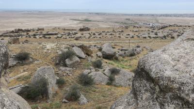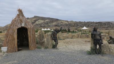 コブスタン遺跡は、海が隆起してできた山で、石器時代から人が住み、岩に岩画を刻み、コミュニケーションをしていたようだ。岩画も6000種を超える。博物館には、それらが説明付きで展示されている。岩山には、岩画のある所が示されており、大変楽しい。カスピ海が眺望できる。