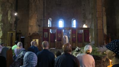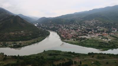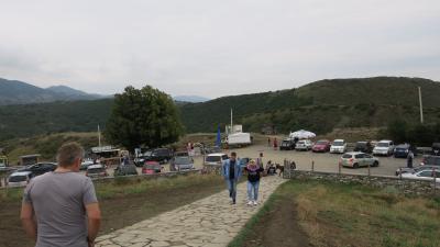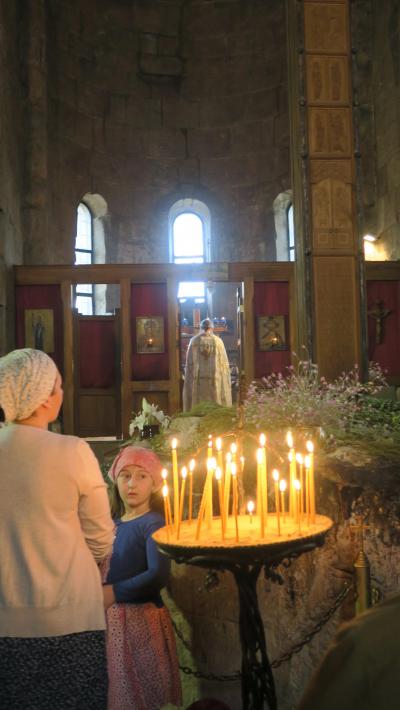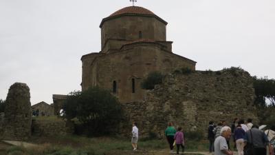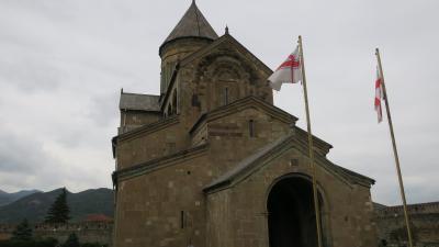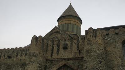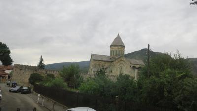 ムツヘタの町にある世界遺産の大聖堂である。駐車場の一角に大聖堂に向かう参道がある。これはいわゆるお土産街である。それを通り過ぎ広場へ着くと、城壁に囲われた大聖堂がある。丁度ミサの最中であったので、中に入ることはできなかったので、周囲をぐるりと回り当時をしのぶ。壁画にはそれぞれ意味があり、昔の人は、これをもって意思の伝達をしていたと思われる。