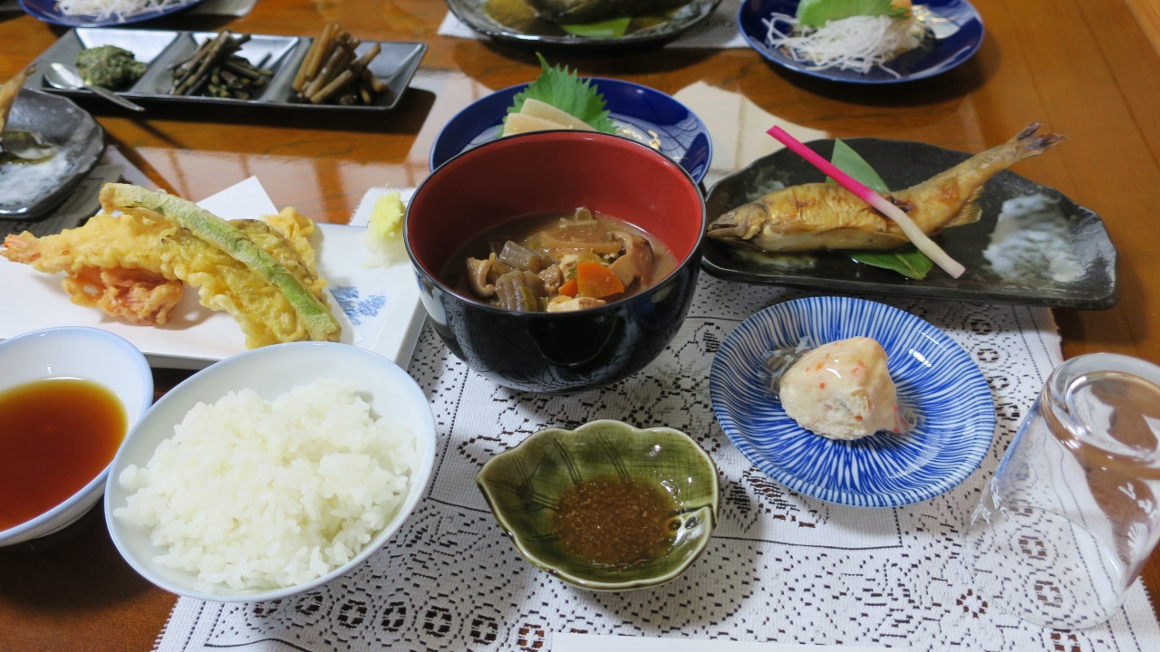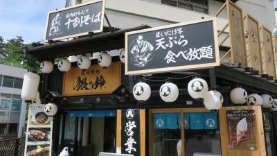 湯畑の入り口にある十割そばとてんぷらの食べ放題のお店である。こじんまりしたお店であるが、次から次へとお客さんが来ていた。我々は、十割そば定食を頼んだ。天ぷらは、サックと上げてあり大変おいしかった。若い人には、+300円で、天ぷらも食べ放題である。温泉卵もついており、お昼としては満点であった。