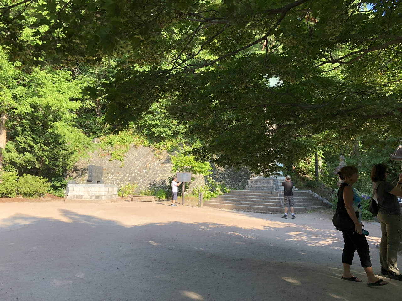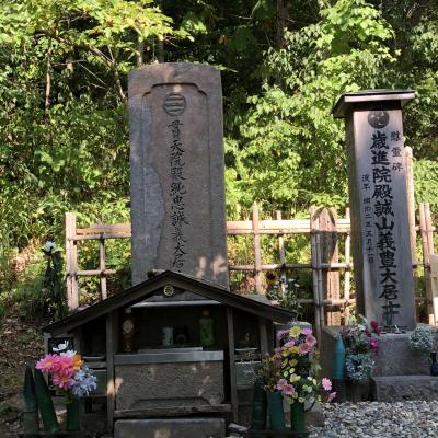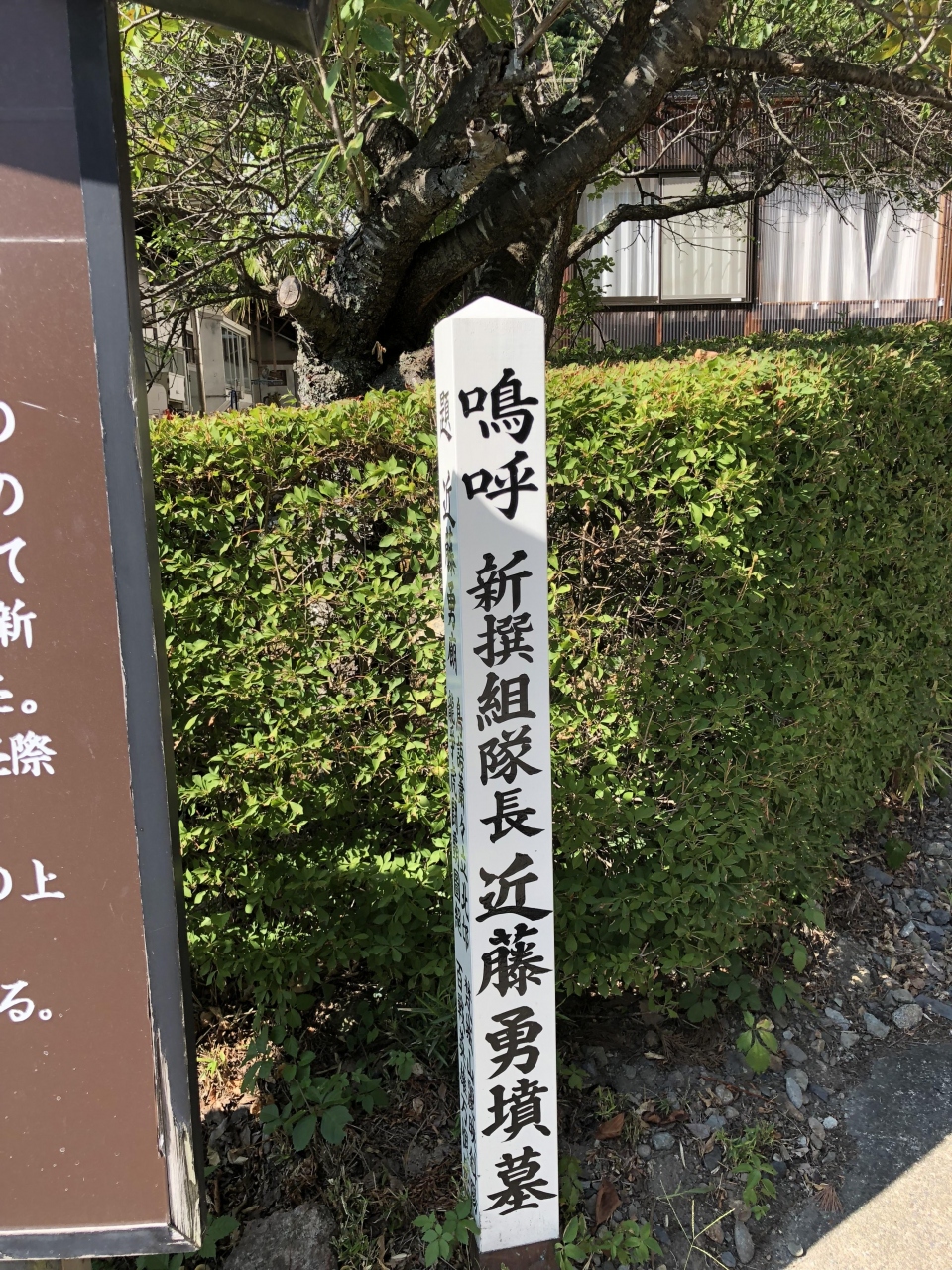 天寧寺の裏手の墓地には新選組の近藤勇の墓があります。歴史に名を土留めた男の墓としては、こじんまりとしていました。訪れる人もそれほど多くはないと思われました。参道を道標に従い上っていくと右手にありました。