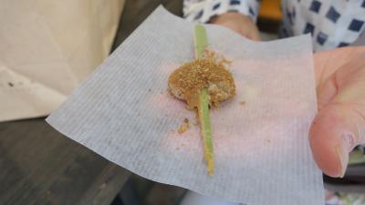 草津に来ると必ず寄るお店の一つが、このゴマ専門店であるゴマ福堂である。お店に入ると香ばしいゴマの香りがして、とても良い。ゴマのことに関して懇切丁寧な説明をされており、日本では非常に少ない生産量になっていることも説明してくれた。ゴマをするのも、うすでついており、香うばしい。この香りに魅せられて、ゴマダンゴを一串買う。