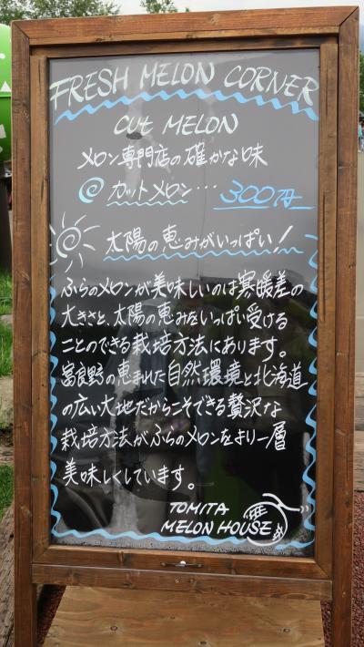 富良野市内にある市場である。富良野名産のもロンはもちろん、野菜など新鮮なものが販売されていた。農家の方も、販売支援をしており、それぞれの特徴を説明してくださった。メロンも朝どれで、糖度は、17度でとても甘いとのこと。孫に送ることにしてしまった。
