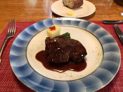 お昼にステーキを食べるべく、予約。到着したら、結構先客がいた。専門店として継続している。ステーキランチで、ヒレを注文。カボチャスープ、サラダ、メインのステーキ、口直しに、メロンのシャーベット、デザートにプリン、そしてコーヒーとフルコース。暑さバテの解消ができた。