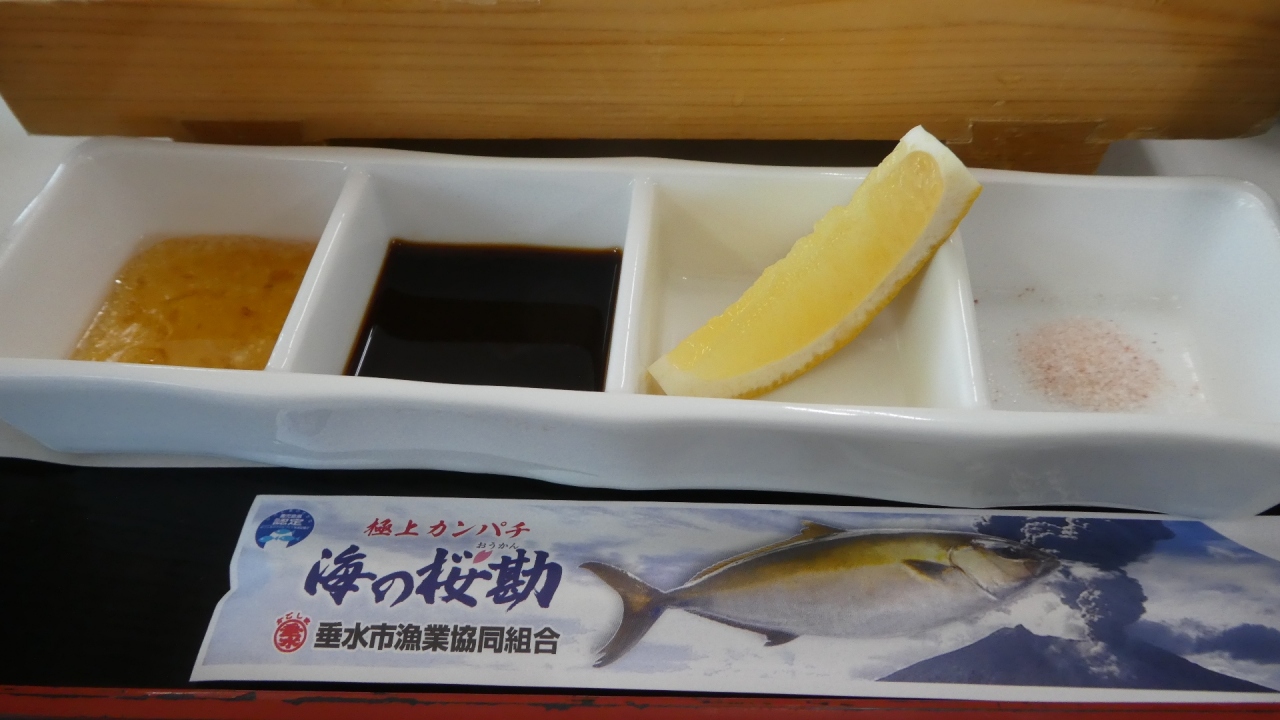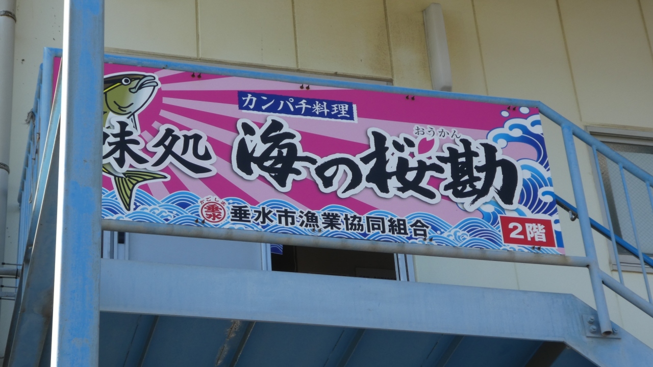 鹿児島での養殖魚のブランドかんぱち 海の桜勘を 養殖している 漁協の二階で食べる事が出来る 食堂です。