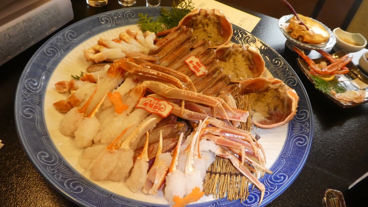 タグの付いた 活けのズワイガニカニを見せられた後 カニを料理する間に 普通のランチのコースが出ます それでも そこそこ良い物でした。