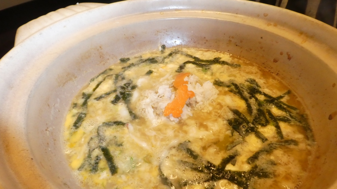 後のほぐし身も入れて 〆の雑炊が カニの身が 米粒より多かったのに満足でっした。