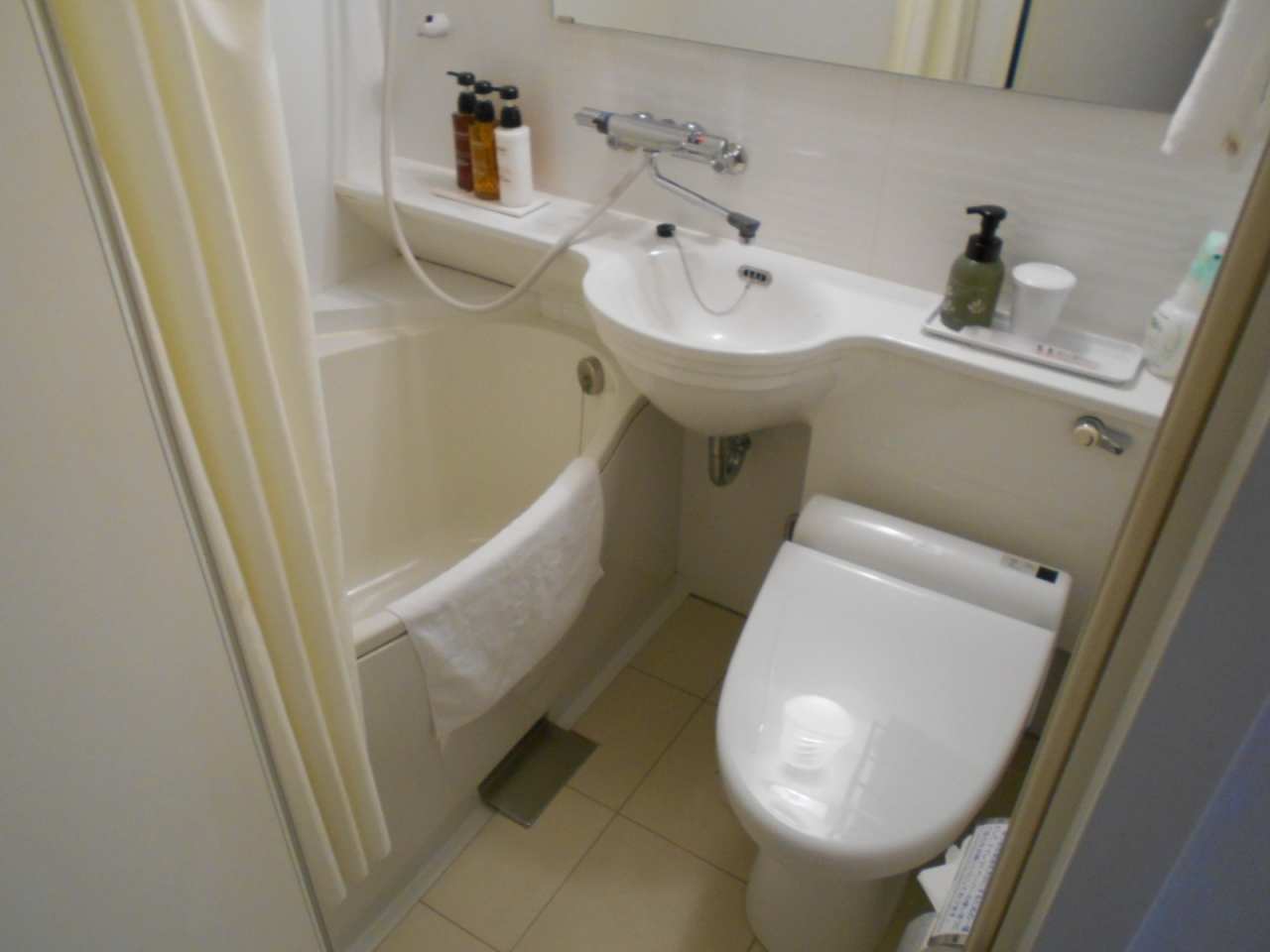 ちょっと狭いビジネスホテルですが バス、トイレ付きの いたって普通に近いビジネスホテルです