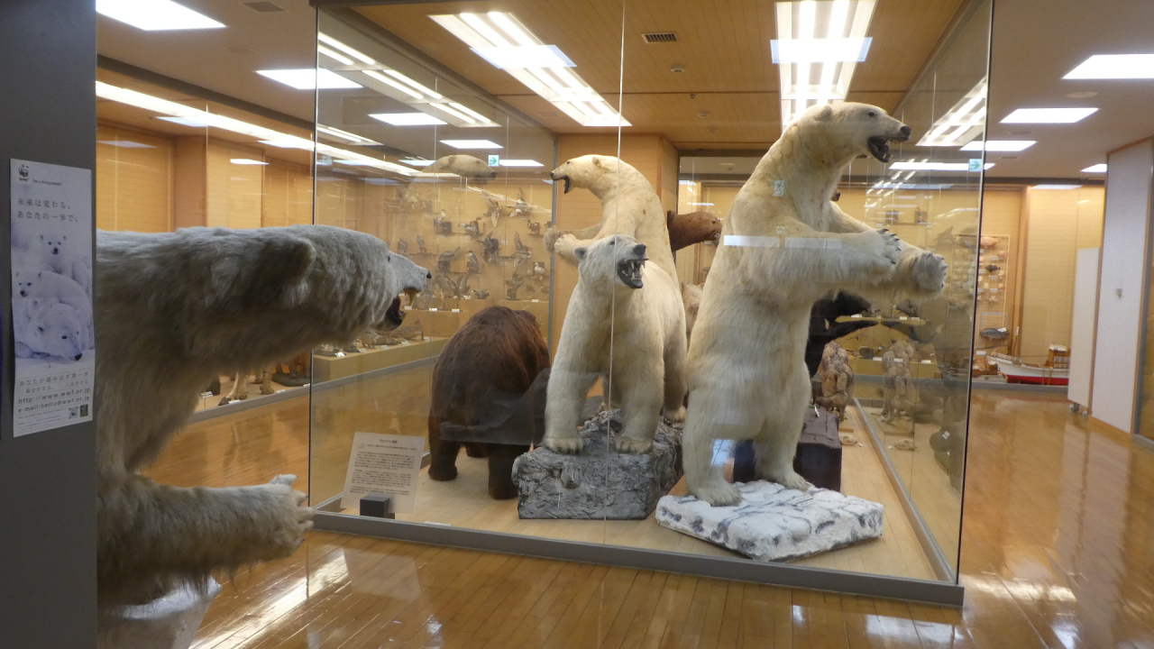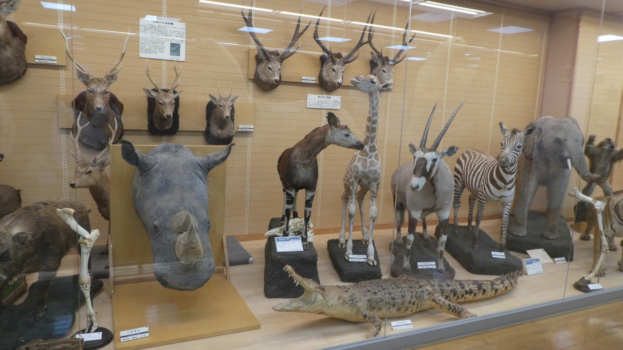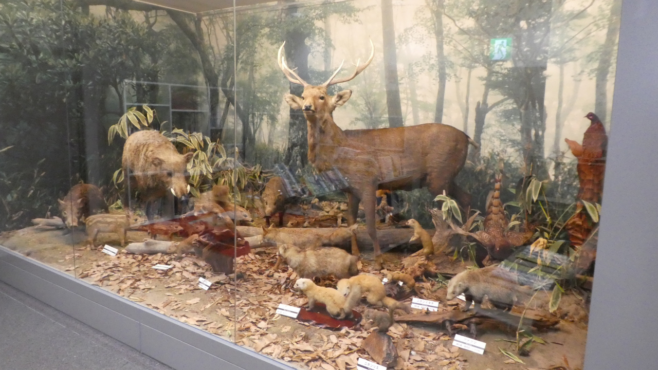 二階までは 小中学生向きの 自然観察コーナーと見ていたのですが、係員の女性に是非とも三階にもどうぞと言われて行ったのですが、大きなフロアすべてが 動物のはく製館でした。