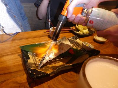 地元の魚もですが、しめ鯖の炙りが その場で burnerで炙るのですが 脂の乗ったしめ鯖の皮の下の脂が溶けて 酢も飛んで 褒めたい一品でした。