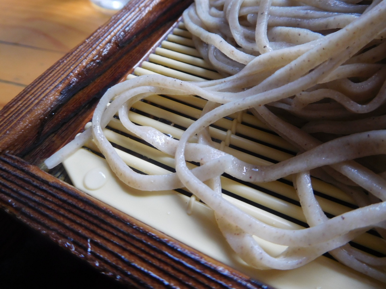 渓谷にはみ出た様なテラス席で、下の方にある川を見たり、小便するタヌキを見ながら蕎麦が来るまで退屈せずに済みました。