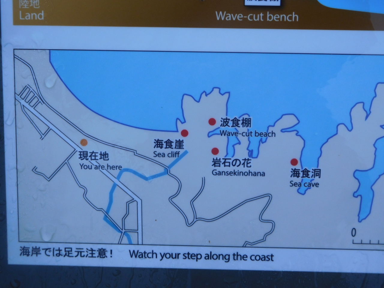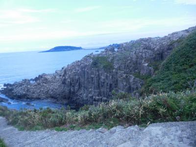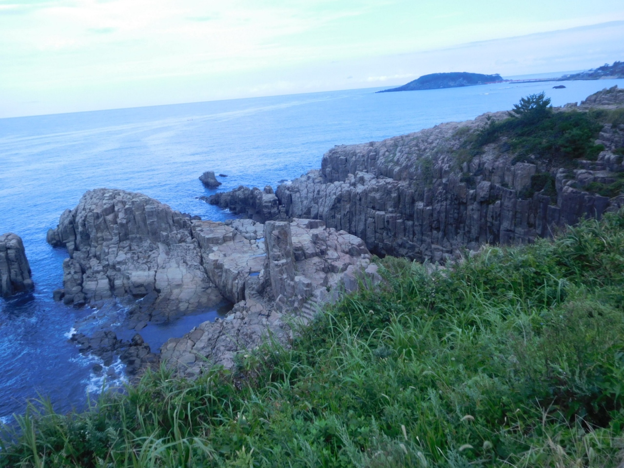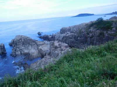 日本海の荒海に削られて 残った硬い岩の断崖です。