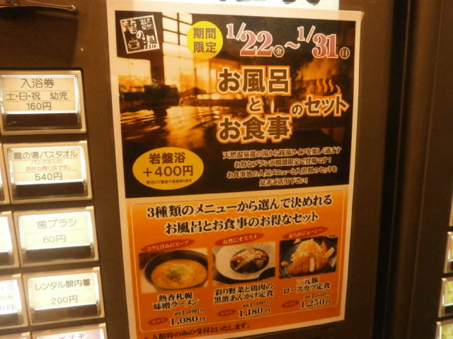食事もいろいろと力を入れており、お勧めの食事と入浴券の合わさったお得券も発売していました。