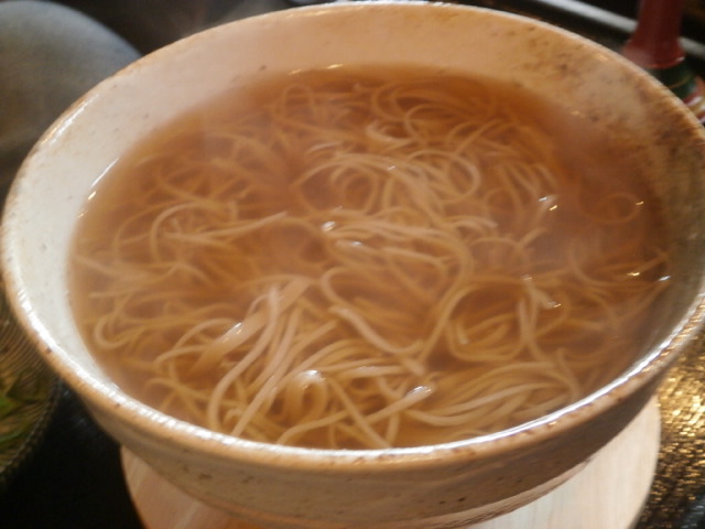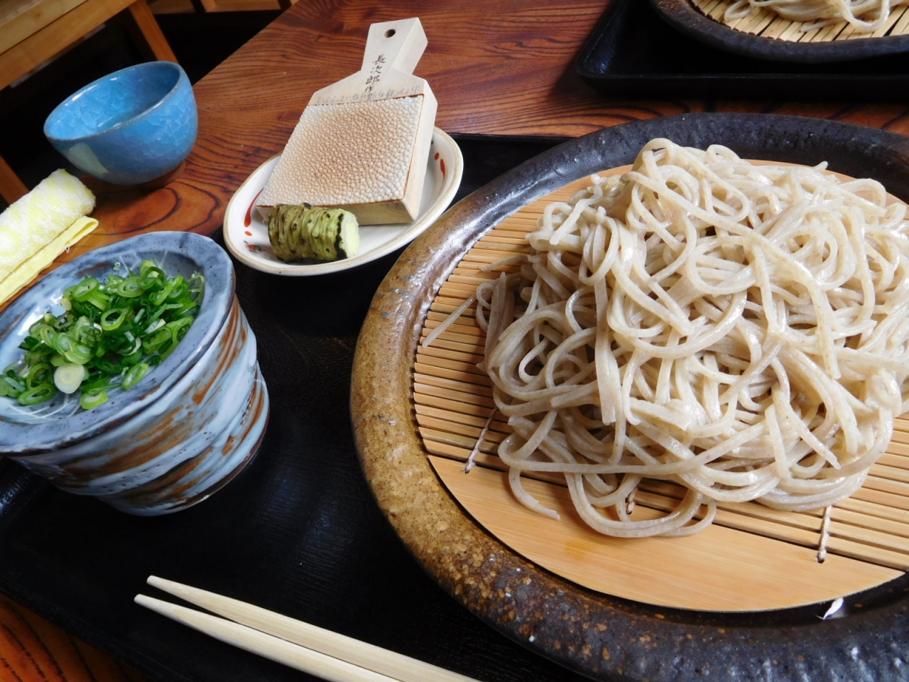 サメ皮のおp露紙と生わさびが出てくるところもうれしく、ポットにはたっぷりの濃い蕎麦湯が出ています。