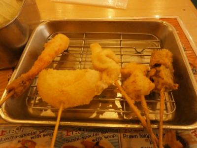 大阪らしく、メニューも豊富です。大阪名物の二度付け禁止の串カツもあります。