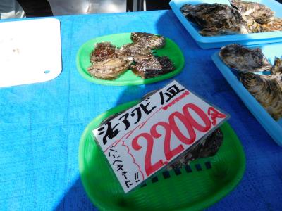 とこぶしぐらいの大きさのアワビが4つで 2200えんでした。